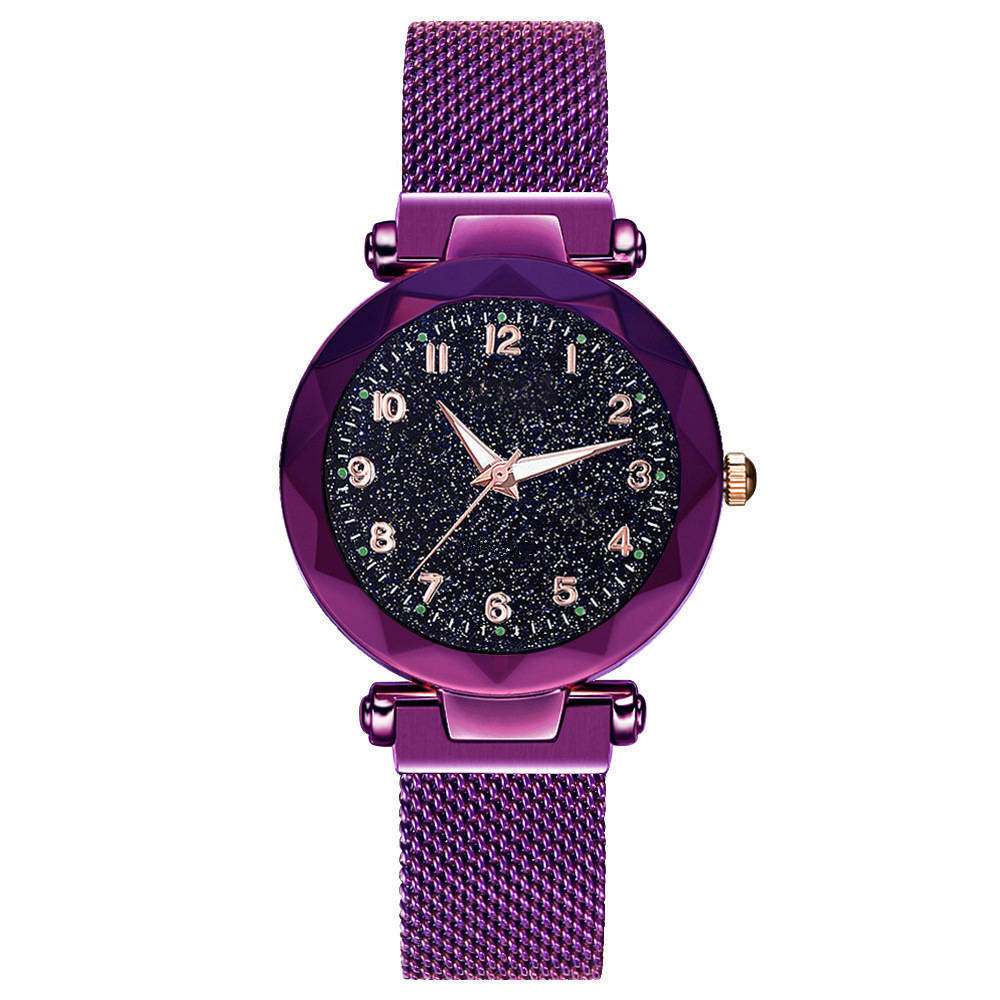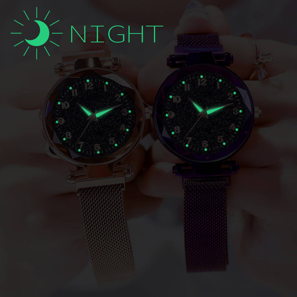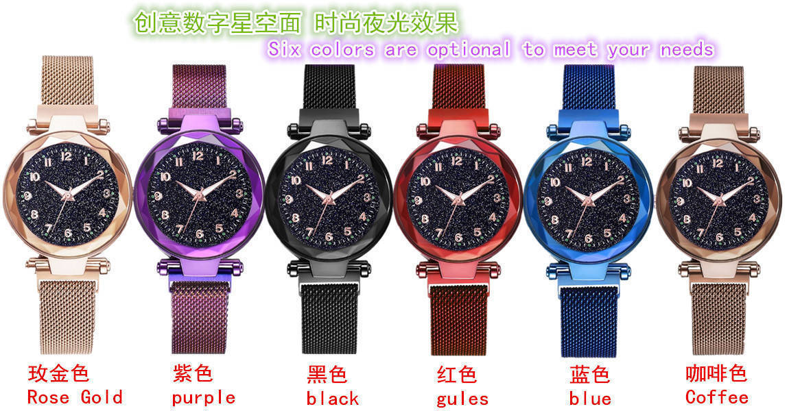 Lưới đỏ bầu trời đầy sao bề mặt kỹ thuật số bề mặt dạ quang màn hình thạch anh ngôi sao nam châm hút sắt đá Milan thắt lưng đồng hồ nữ học sinh
