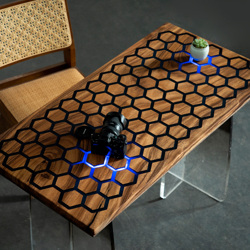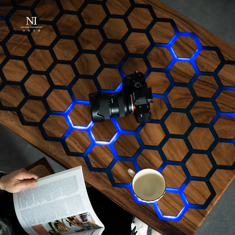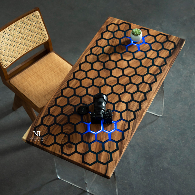 Lưới màu đỏ cùng phong cách cảm ứng ma thuật bàn sông trang trí nội thất bàn nhựa epoxy dải dài đơn giản bàn gỗ nguyên khối chịu mài mòn