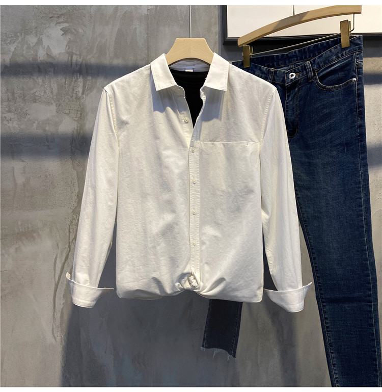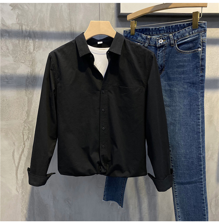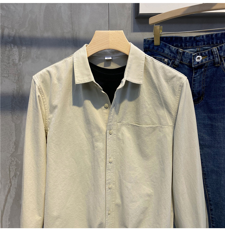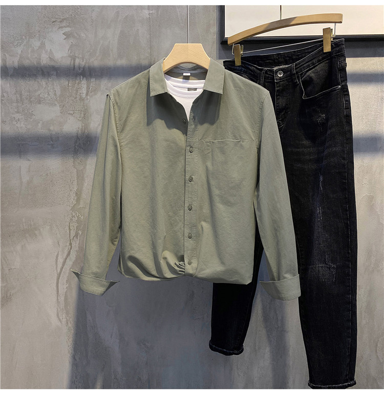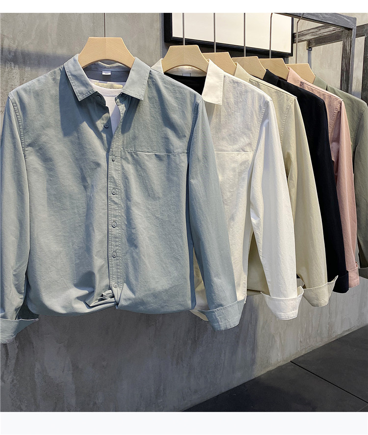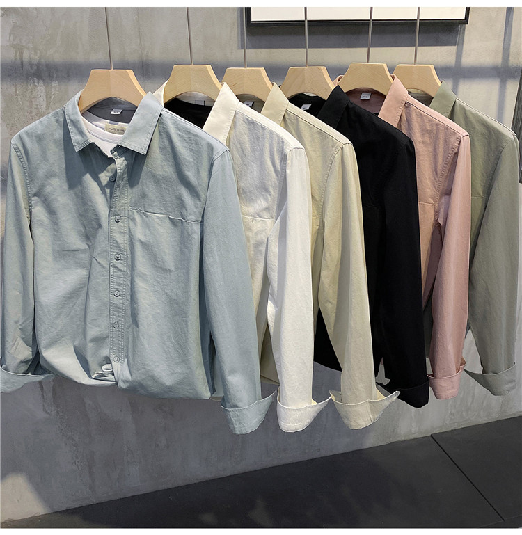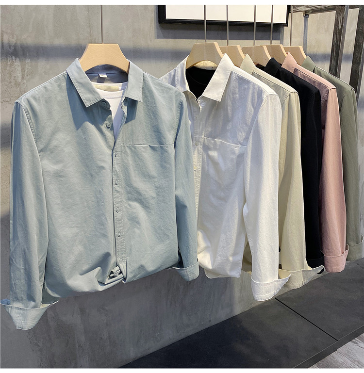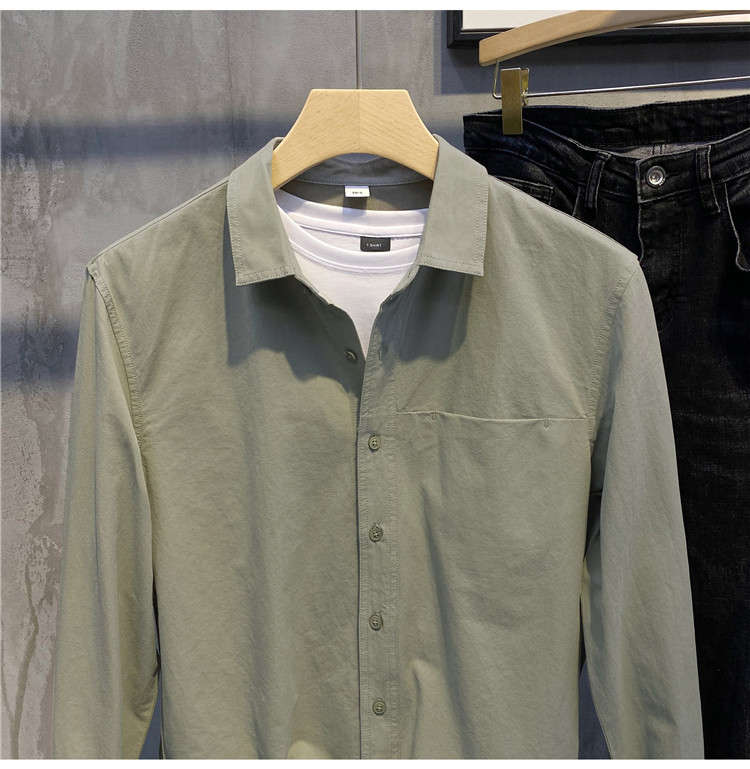 LUUD Mùa xuân Mới Màu rắn Đơn giản Áo sơ mi có ve nam mỏng vừa vặn Áo sơ mi dài tay Đơn giản Đa năng Áo ngoài