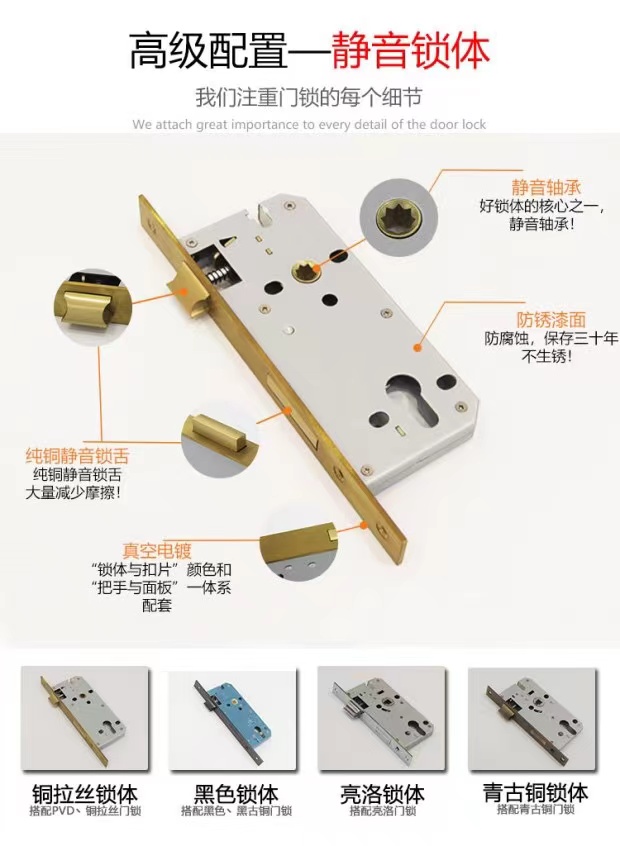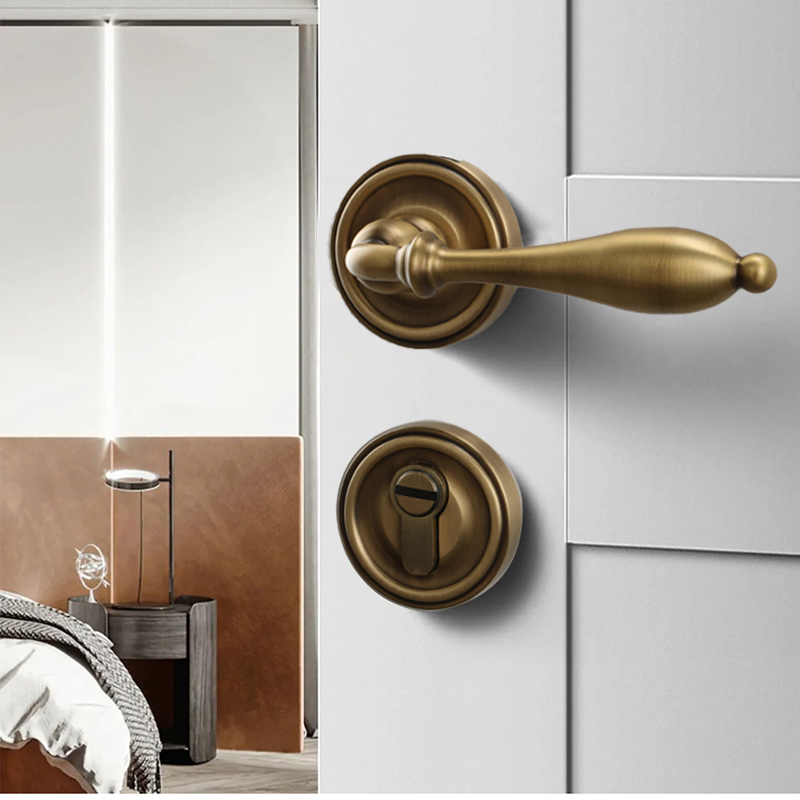 LV TERRVC đồng nguyên chất Pháp khóa cửa retro bằng đồng tắt tiếng hút từ khóa cửa phòng đơn giản ánh sáng sang trọng về tay cầm bạc