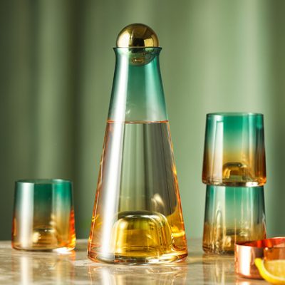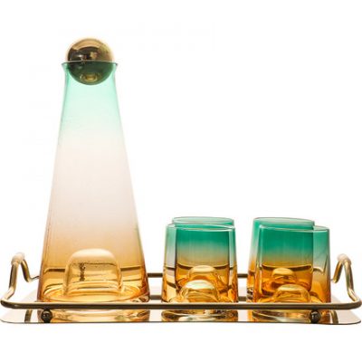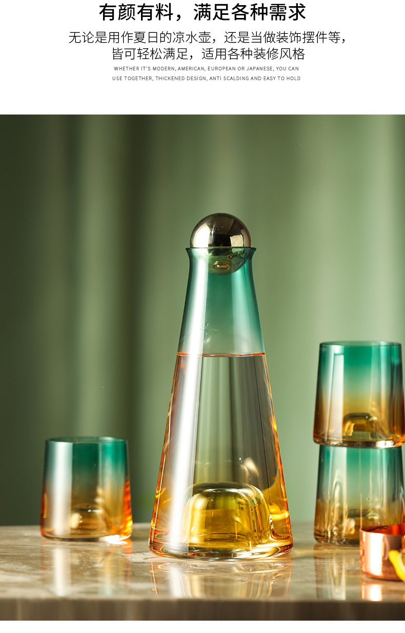 - Phân loại màu sắc: Bộ ly thủy tinh xanh hổ phách gradient [4 ly 1 nồi 1 khay] nón HS-2151