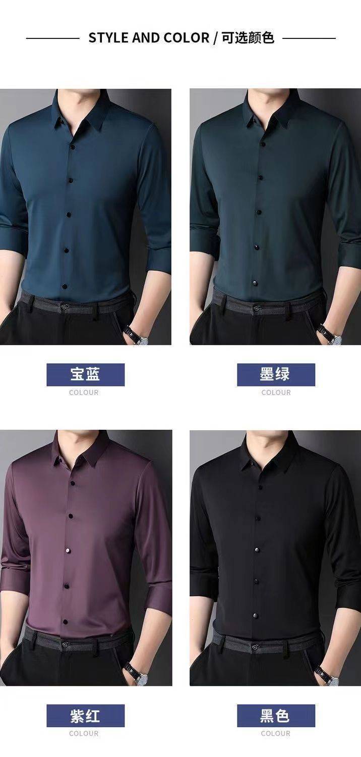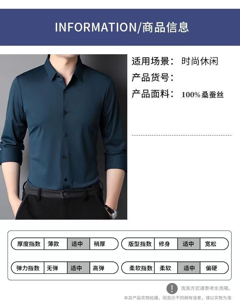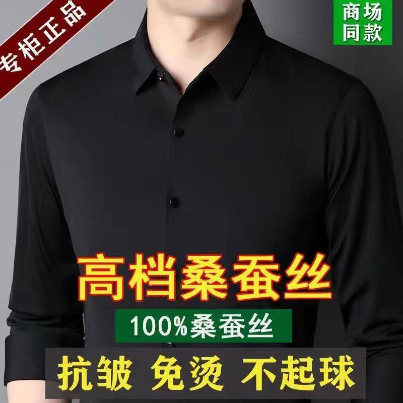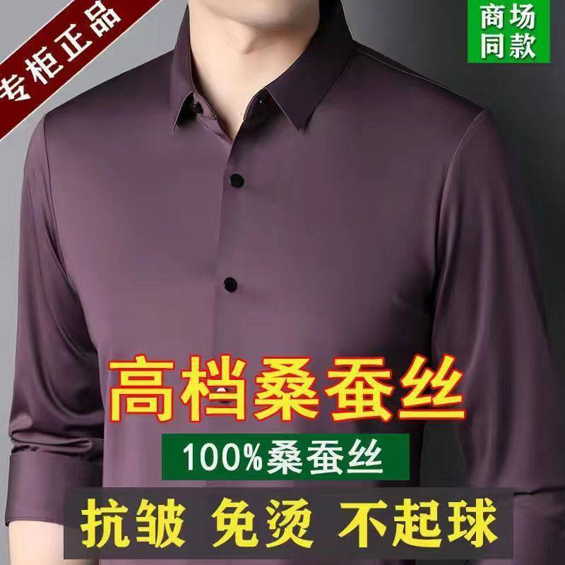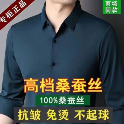 Mã gãy đặc biệt đẹp trai 100% tơ tằm nam cao cấp không vết nhăn áo sơ mi dài tay trung niên và cao tuổi mùa xuân và mùa thu