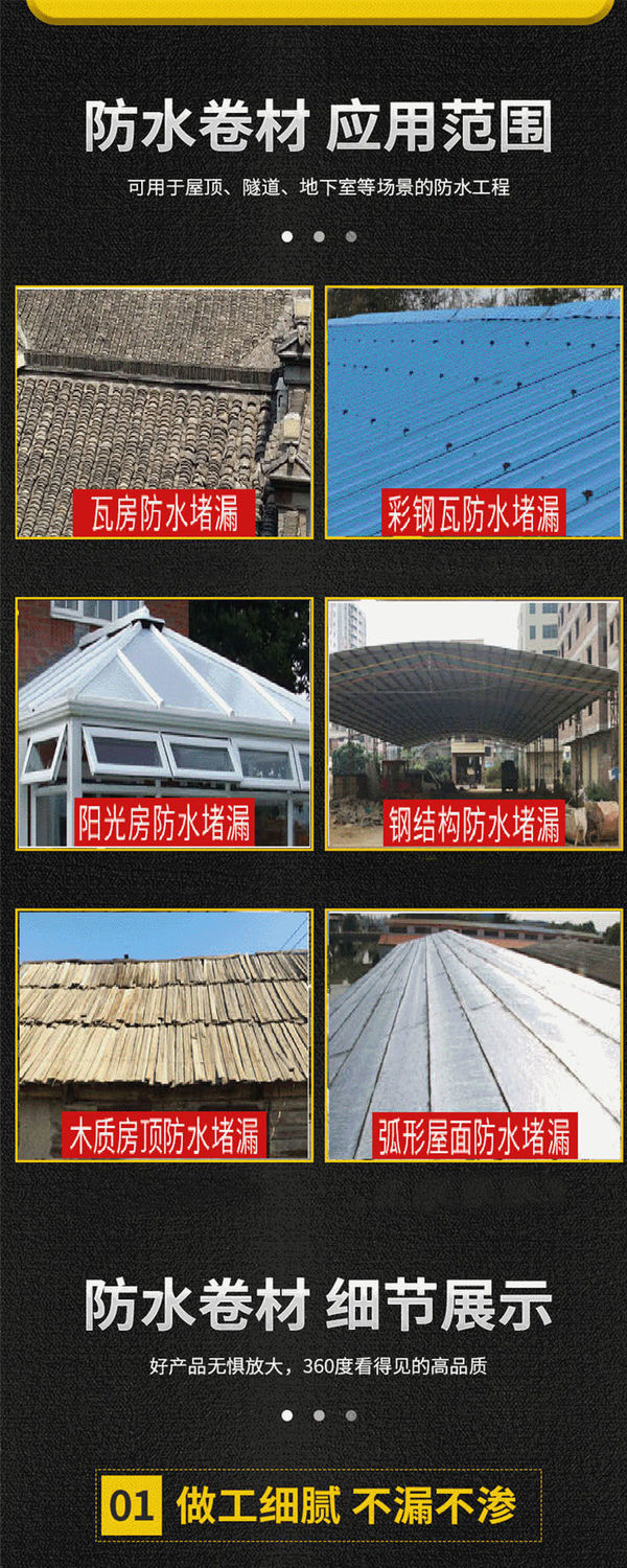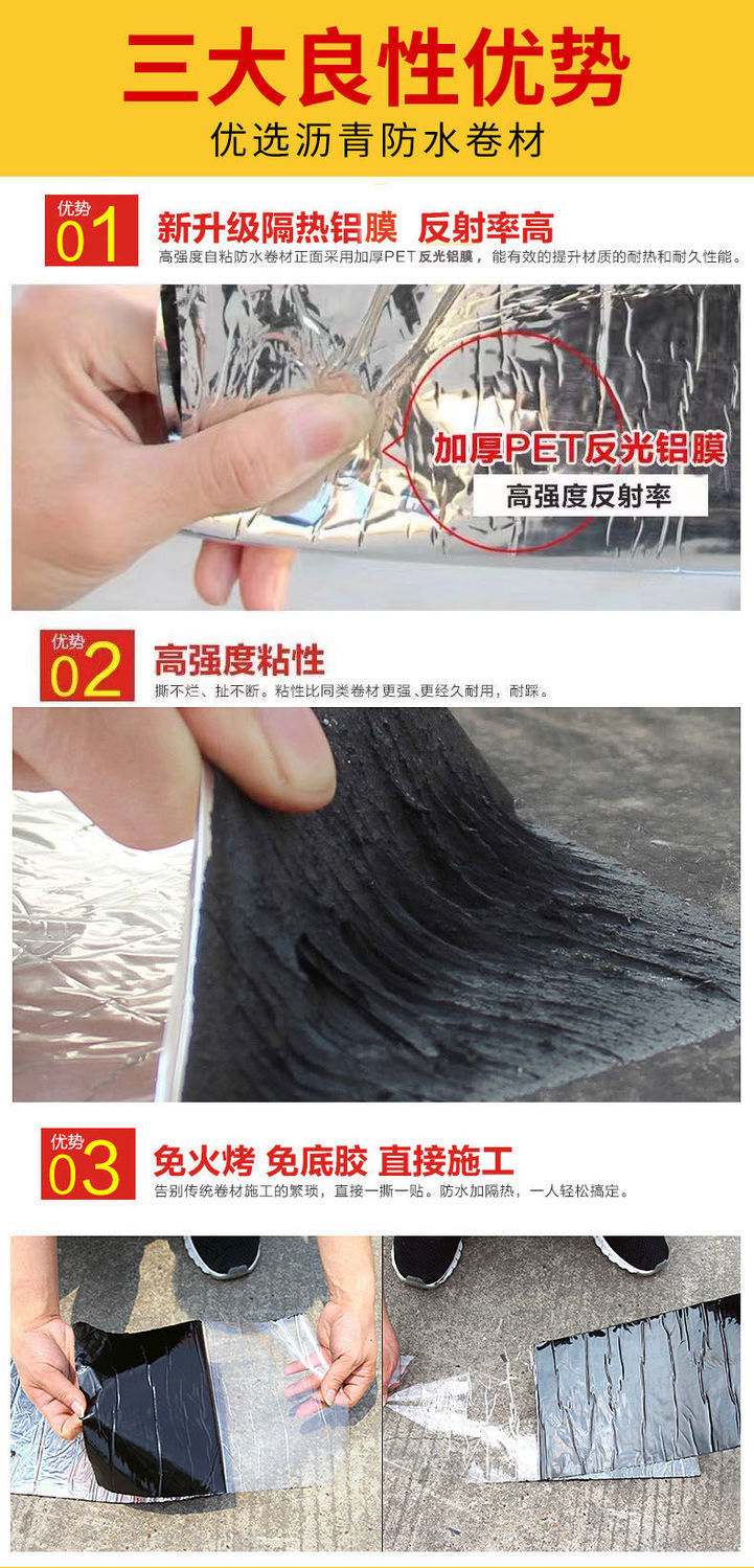 Mái bằng phẳng tự dính chống rò rỉ sbs nhựa đường màng chống thấm chống nắng màng chịu nhiệt độ cao vật liệu chống rò rỉ nhà cũ