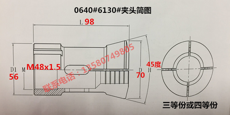 2、现货的0640圆孔夹头切槽为四等分,0630圆孔夹头切槽为三等分.如果有特别要求的联系客服定做。