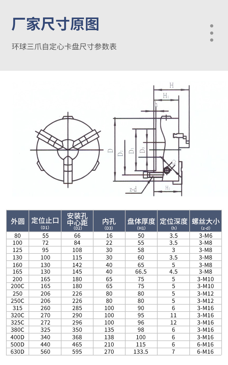 Mâm cặp mâm cặp ba hàm vạn năng 160 Máy công cụ CNC 200 tự định tâm K11-250 khẩu độ lớn 320 Sổ tay hướng dẫn sử dụng