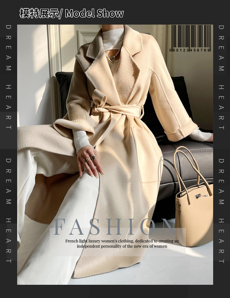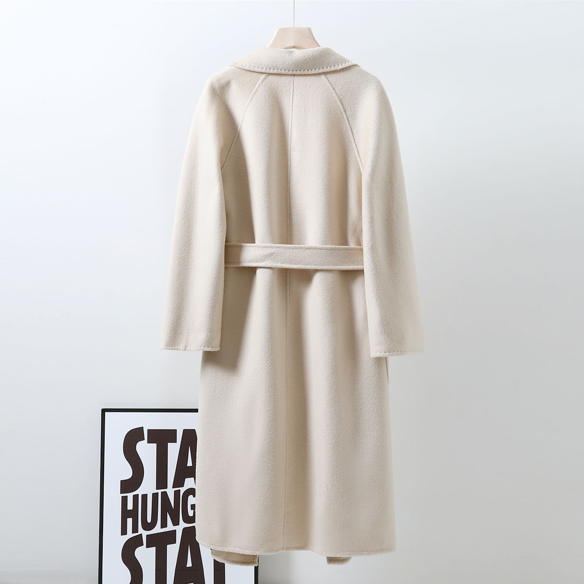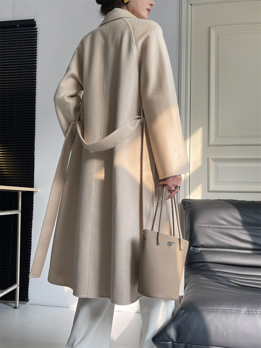 Mạnh Tử Hi mùa thu đông mới M nhà handmade 2 mặt nước gợn len áo khoác len cashmere phối nữ X542