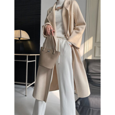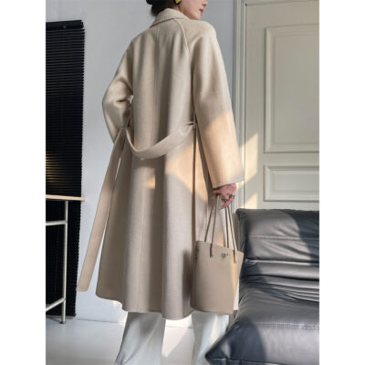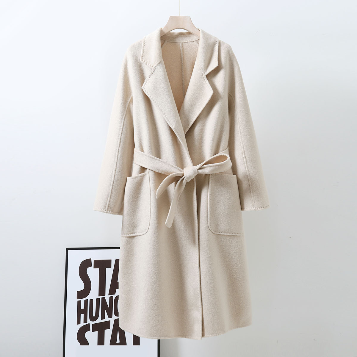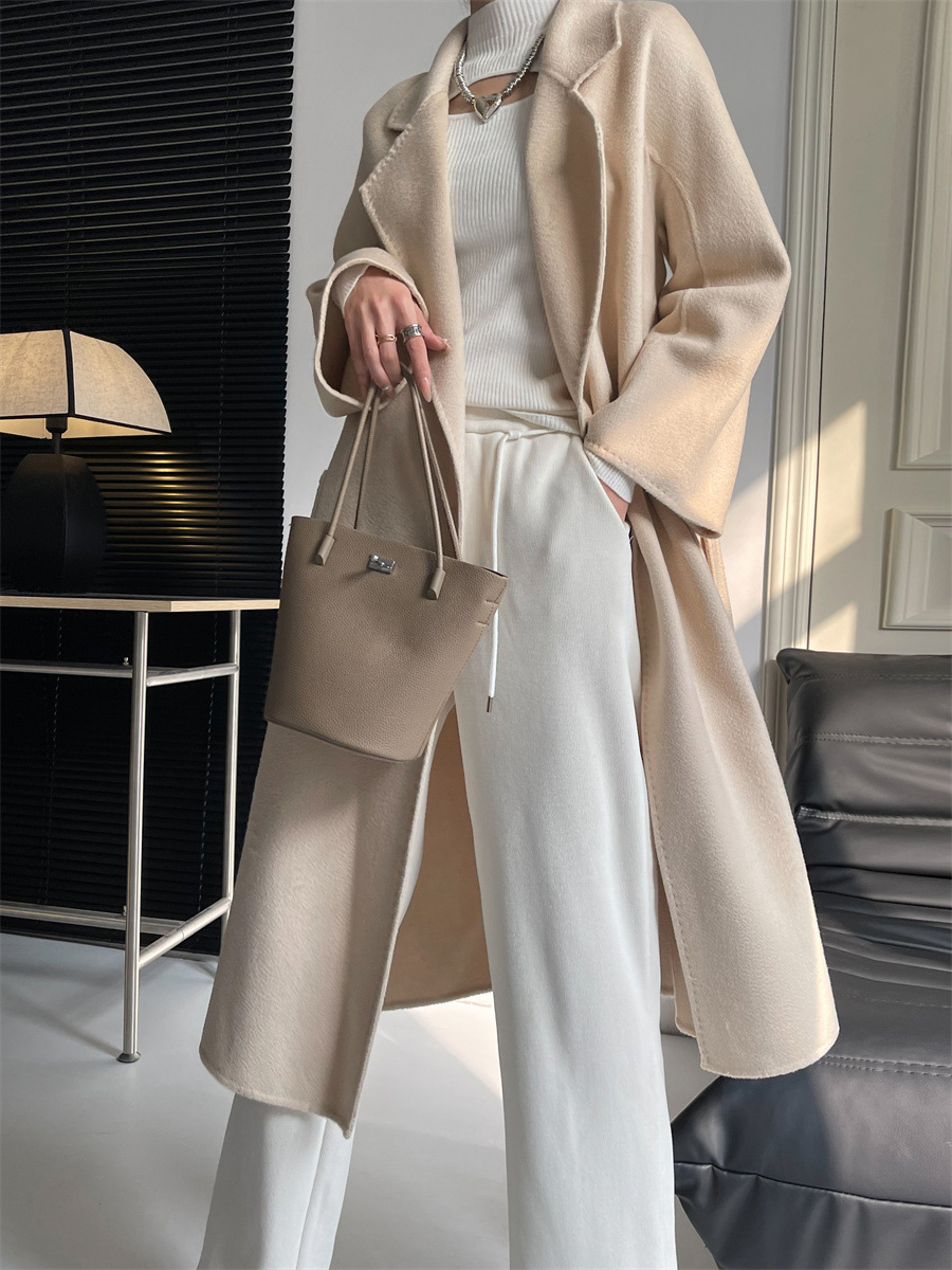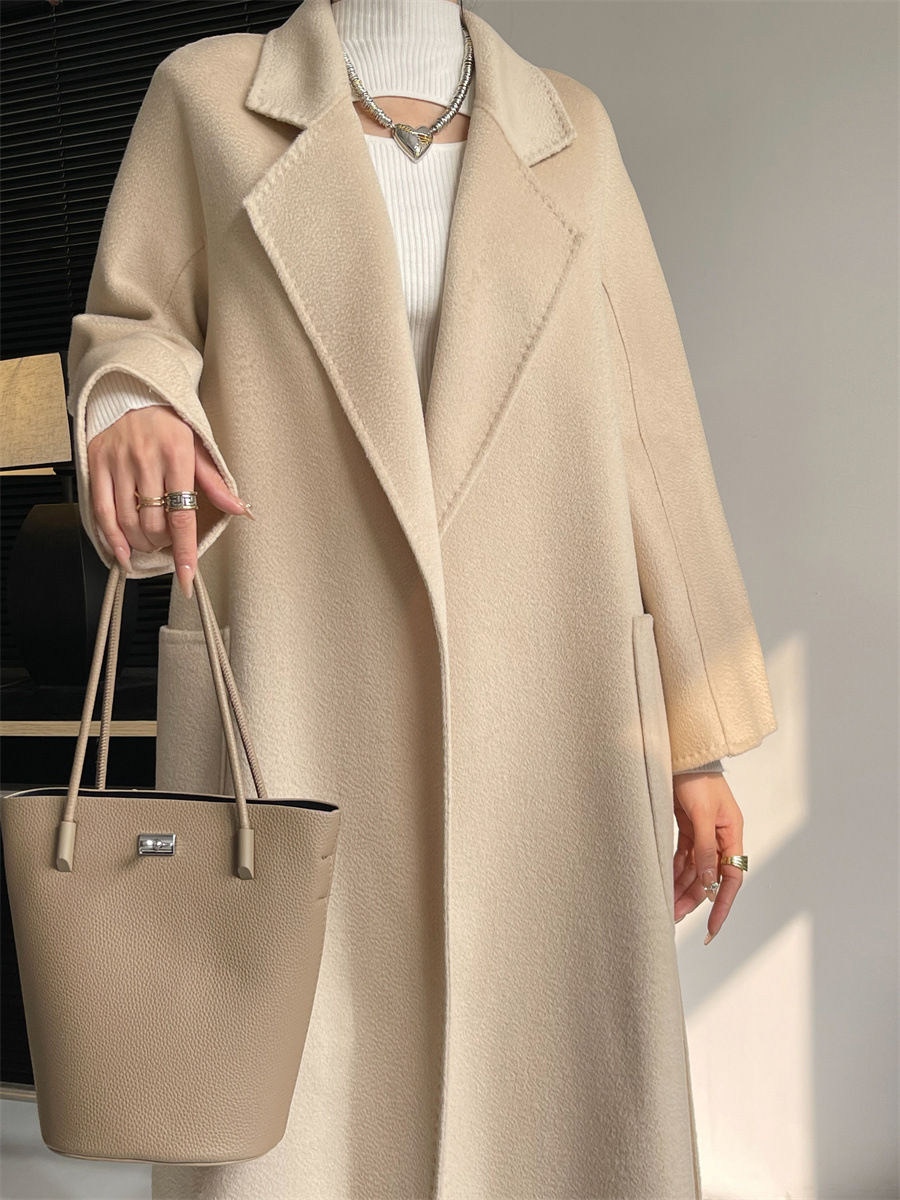 Mạnh Tử Hi mùa thu đông mới M nhà handmade 2 mặt nước gợn len áo khoác len cashmere phối nữ X542