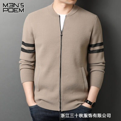 Manz Lụa Thu Đông Mới Áo Len Dệt Kim Áo Khoác Nam Cổ Bóng Chày Áo Len Cardigan Xu Hướng Hàn Quốc Nam