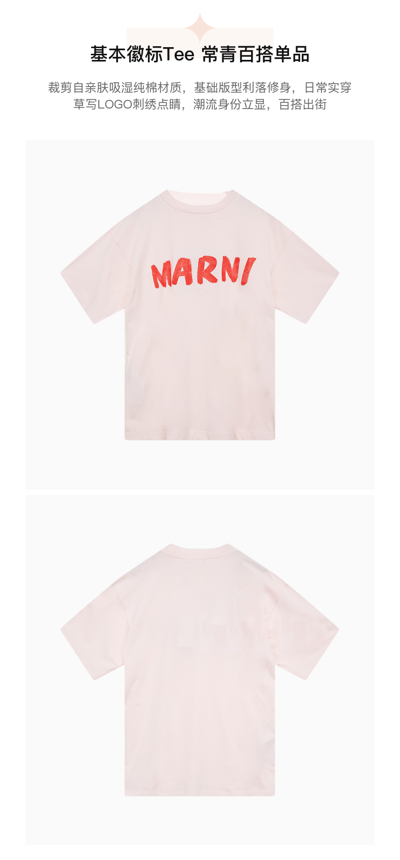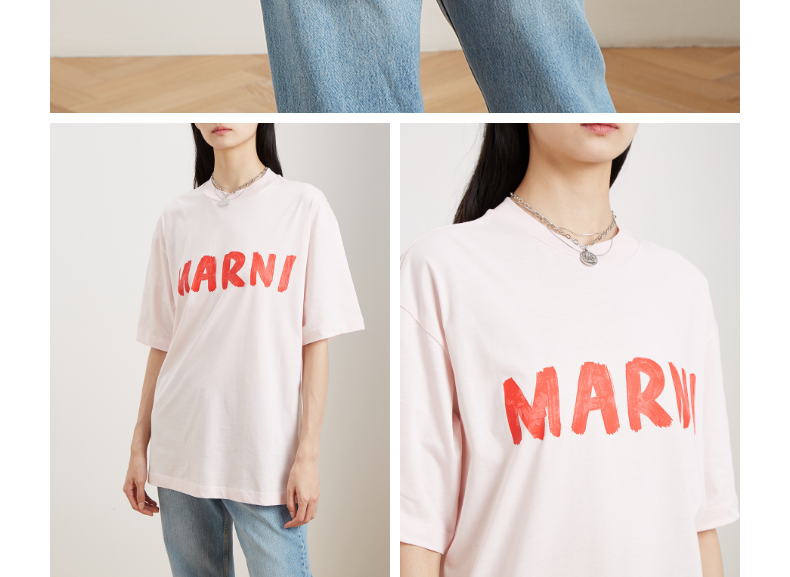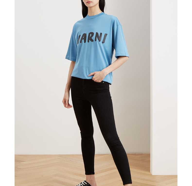 MARNI cotton cổ điển in chữ thảo của phụ nữ áo thun nữ cổ tròn hàng đầu niche hàng đầu của phụ nữ