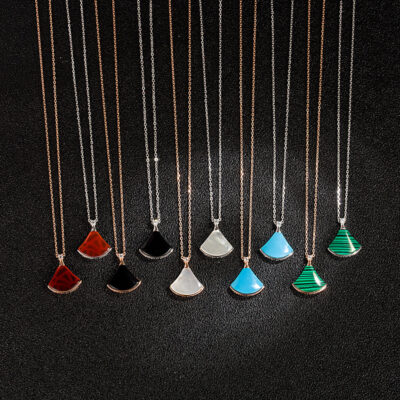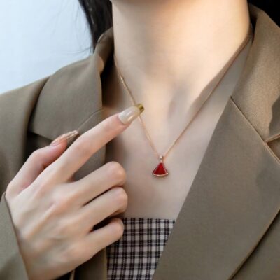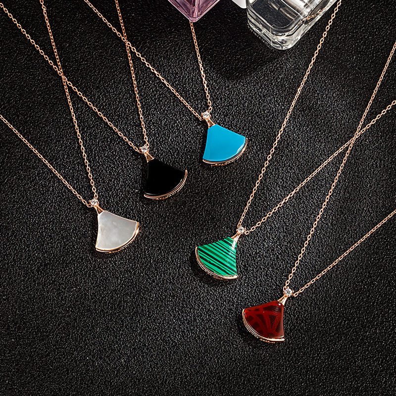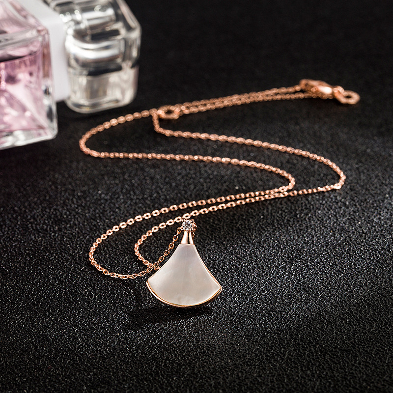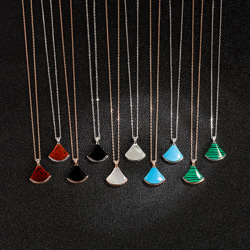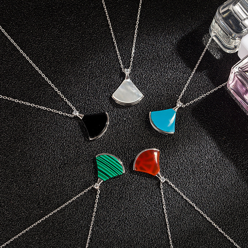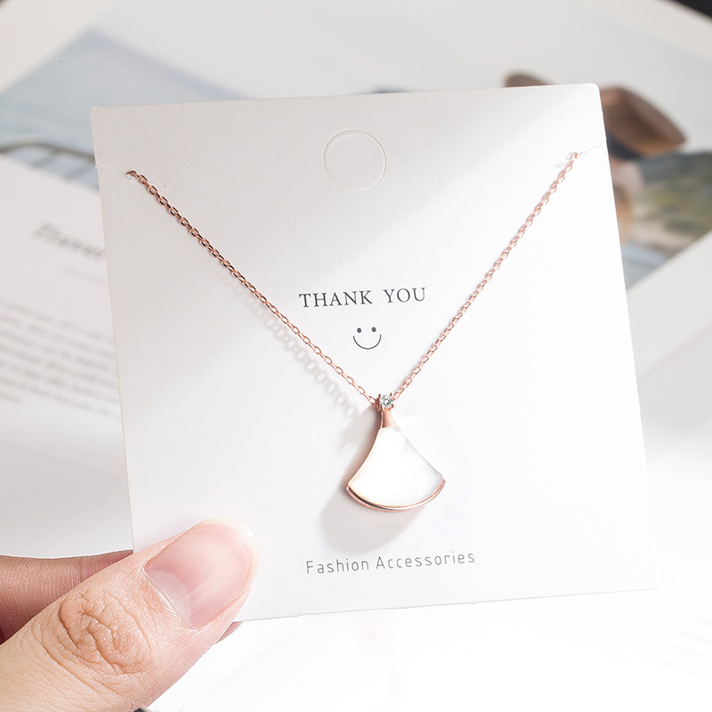 Mặt dây chuyền bạc S925 vòng cổ hình cánh quạt màu trắng xà cừ đỏ váy xương quai xanh dây chuyền nữ lưới đỏ vòng cổ đơn giản