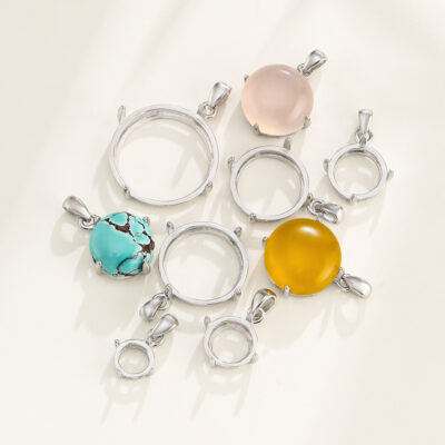 Mặt dây chuyền bạc sterling s925 với khung trống và bốn móng vuốt
