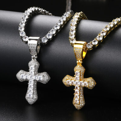 Mặt dây chuyền chữ thập zircon màu vuông phong cách nổ xuyên biên giới