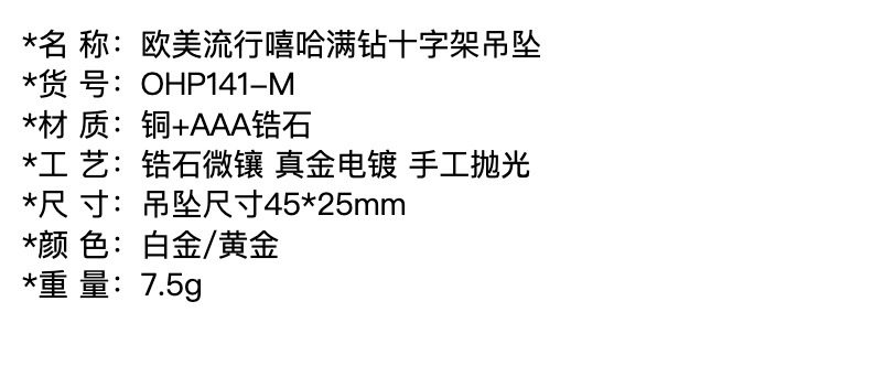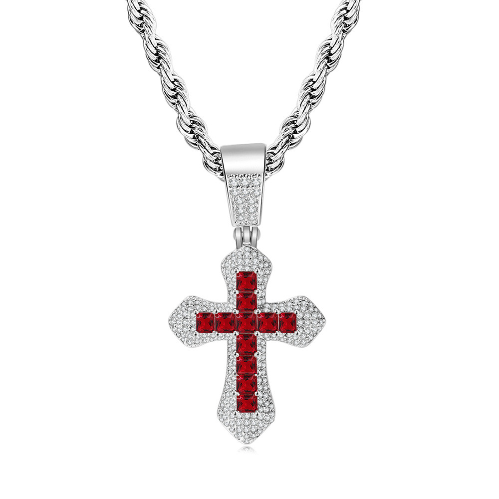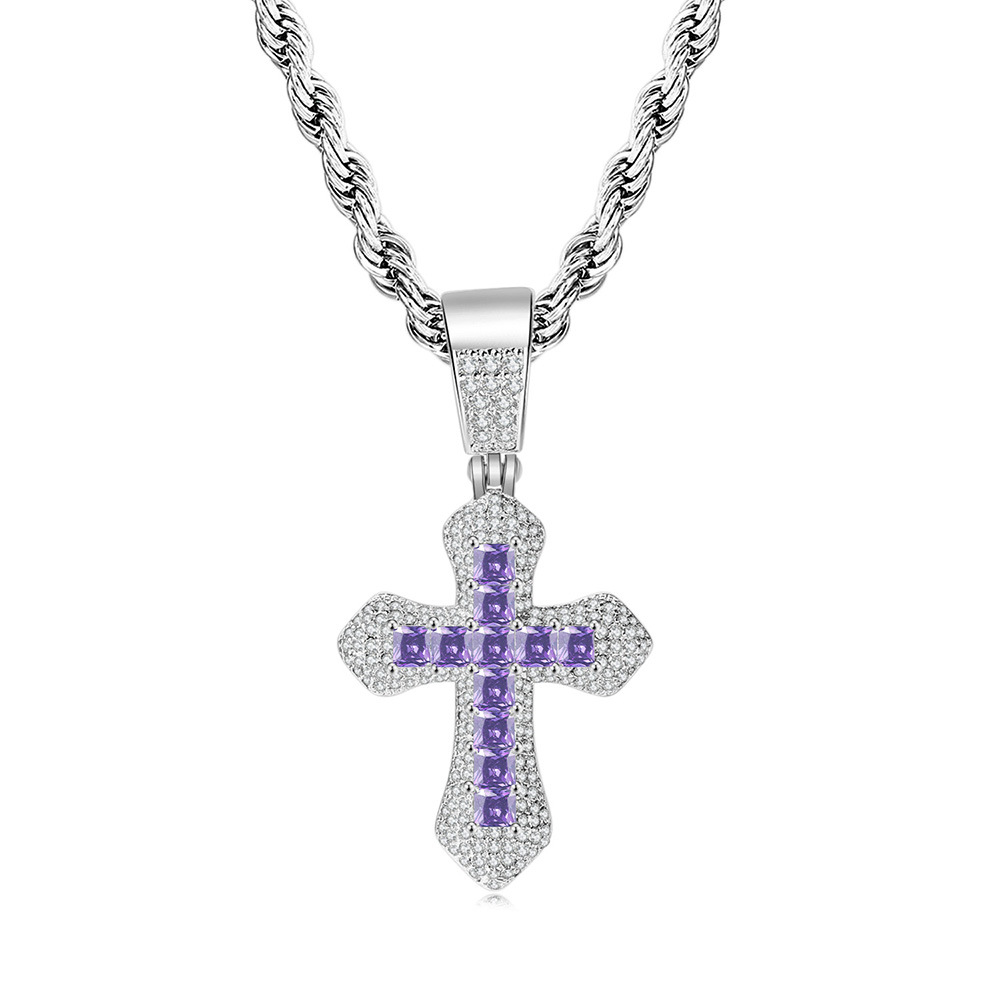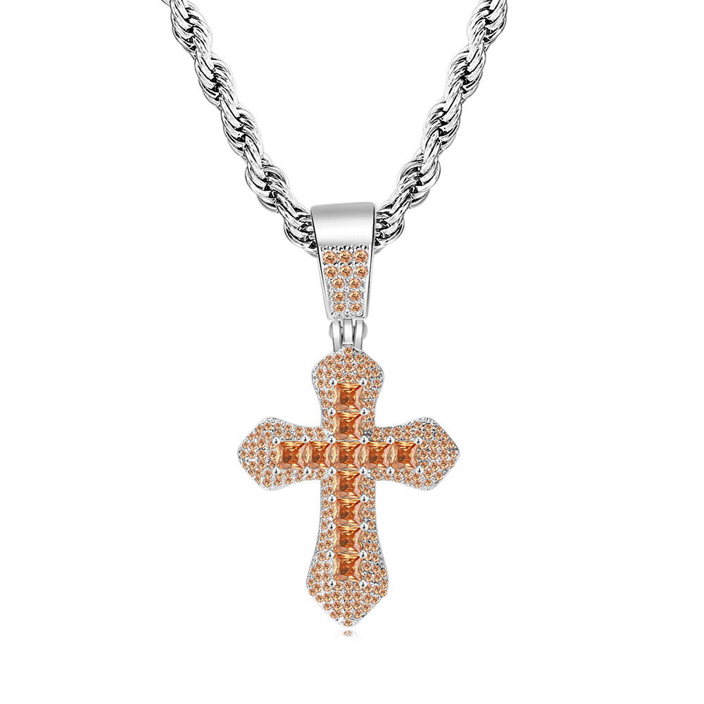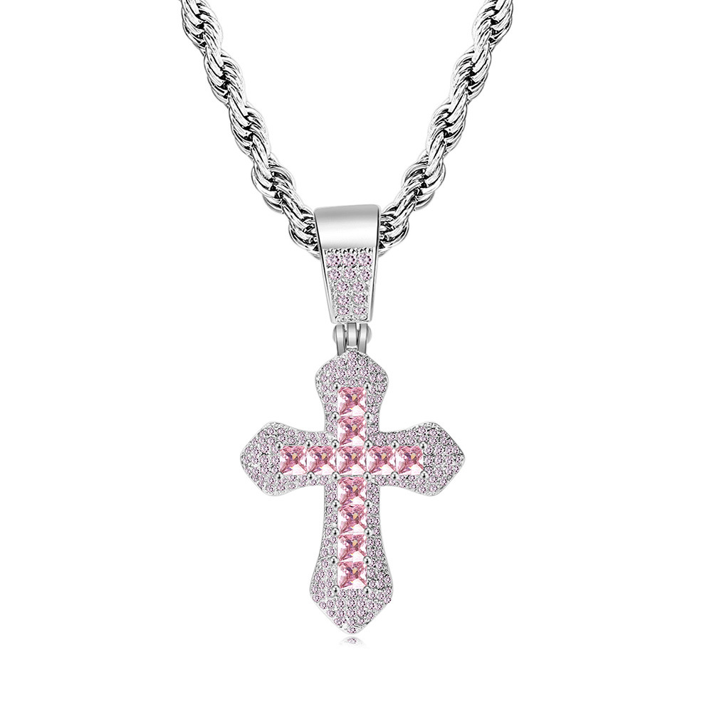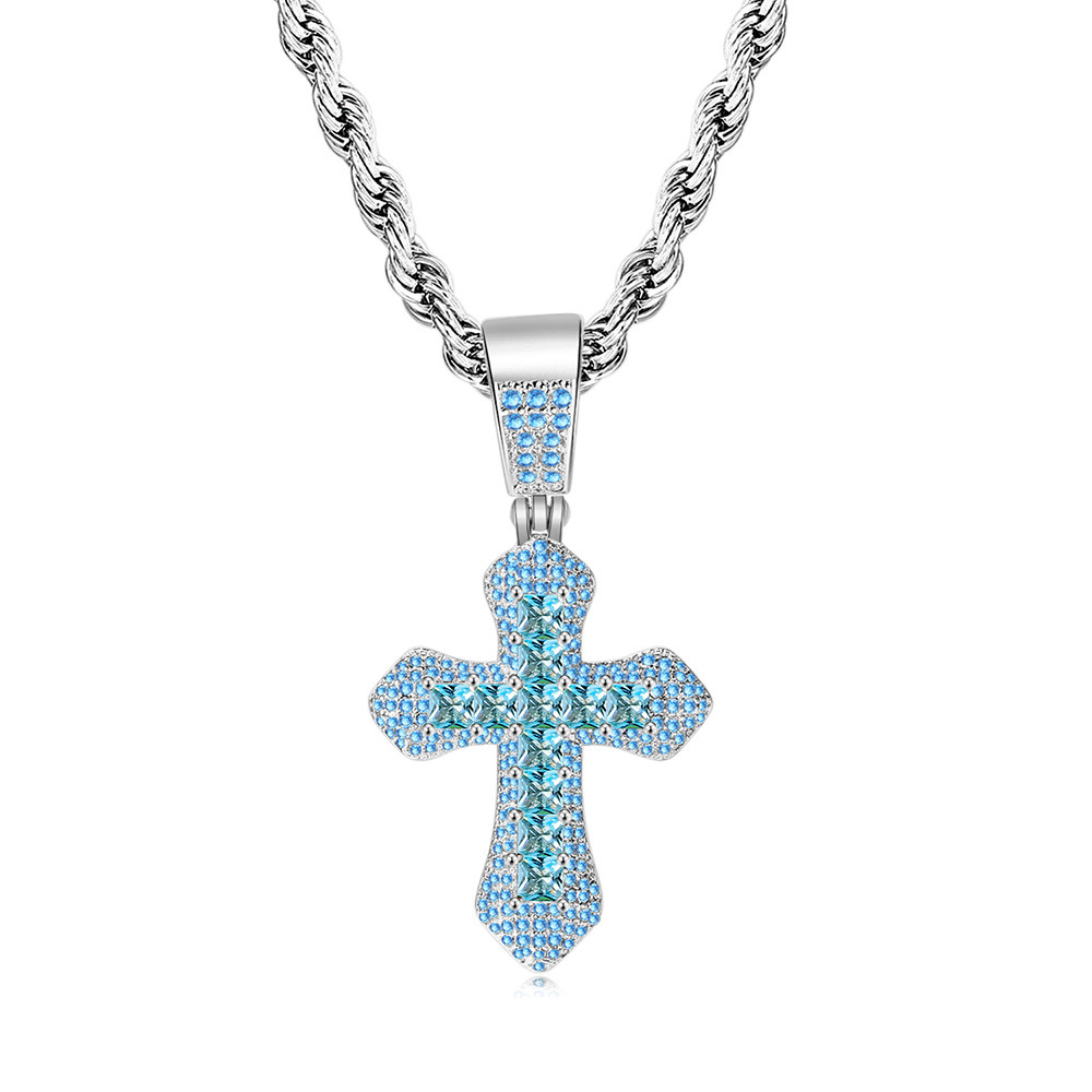 Mặt dây chuyền chữ thập zircon màu vuông phong cách nổ xuyên biên giới