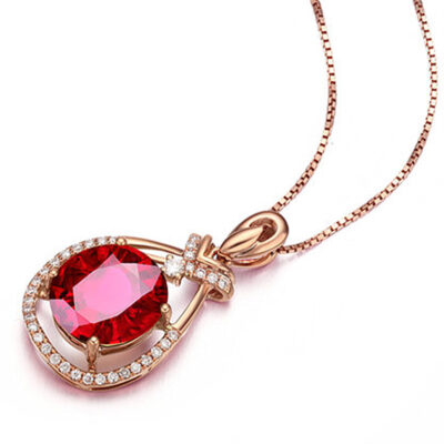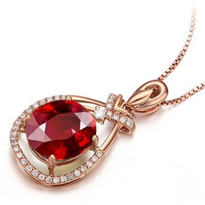 Mặt dây chuyền đá tourmaline hồng ngọc quý phái mới của châu Âu và châu Mỹ mạ vàng hồng 18K hình quả trứng mặt dây chuyền tiệc kim cương đầy đủ