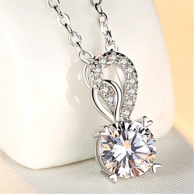 Mặt dây chuyền đôi tình yêu mô phỏng mặt hàng kim cương một carat mặt dây chuyền kim cương carbon cao d màu bốn móng tay mặt dây chuyền bông tuyết tình yêu