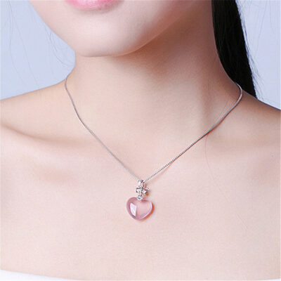 Mặt Dây Chuyền Trái Tim Màu Hồng Ngọt Ngào Sự Thật Của Tình Yêu Tĩnh Lặng Độc Tâm Pha Lê Hoa Dâm Bụt Thạch Mặt Dây Chuyền Đá Quý