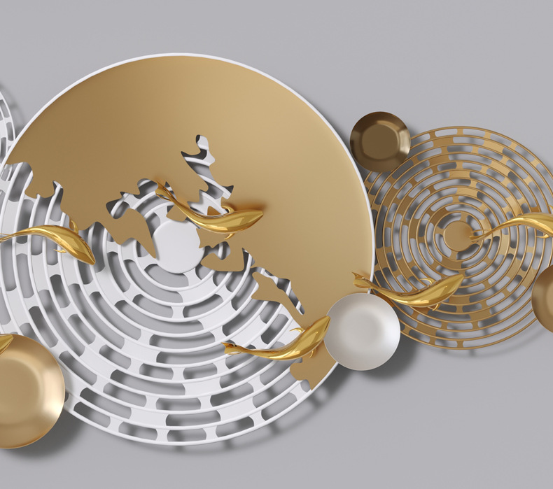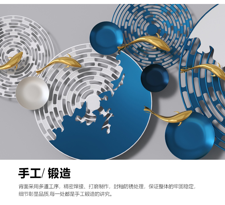 Mặt dây chuyền trang trí phong cách Trung Quốc mới sofa phòng khách nền tường sắt rèn treo tường ba chiều kim loại sáng tạo mặt dây chuyền trang trí