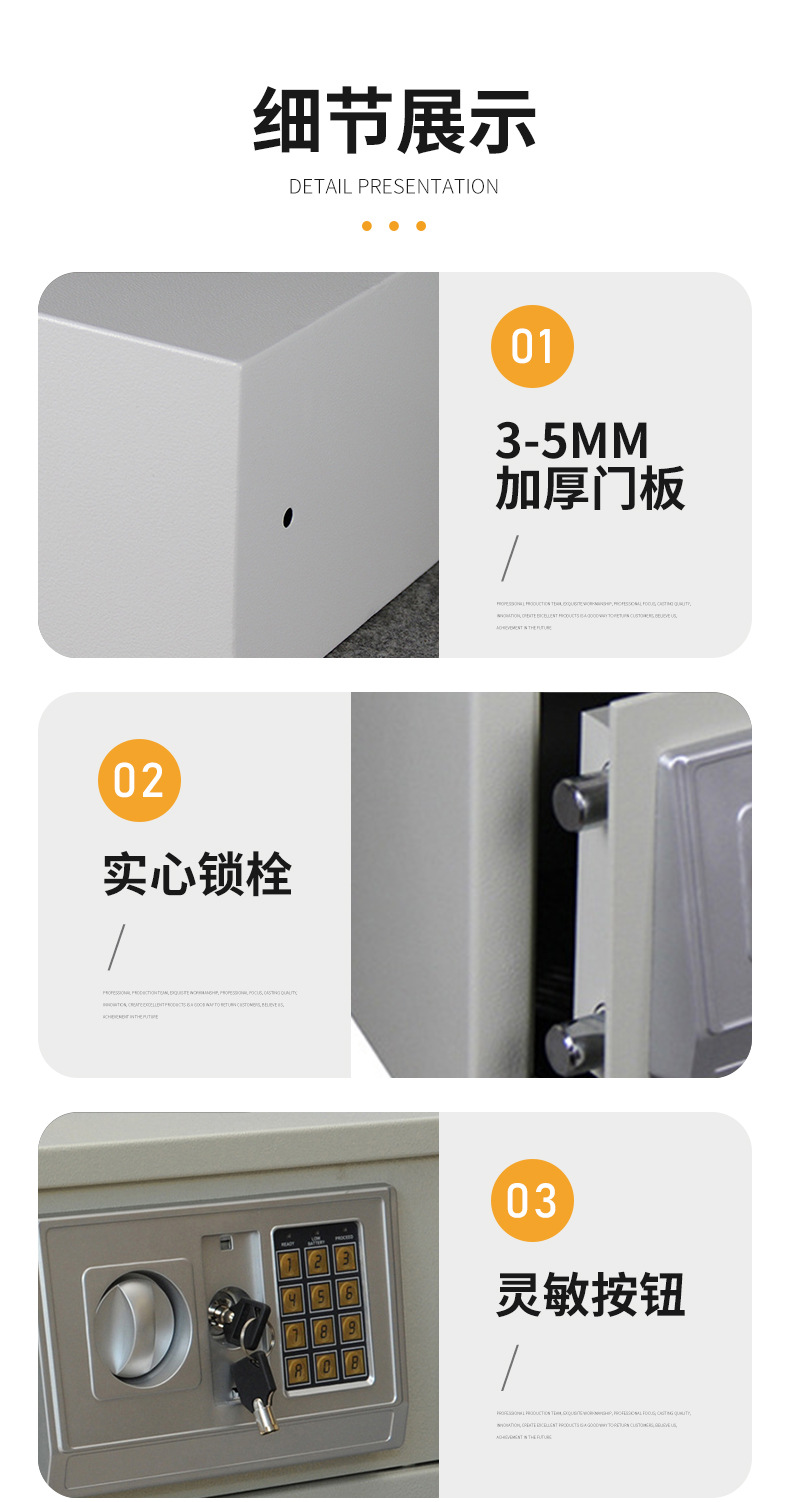 Sản phẩm nổi bật với các tính năng: Mật khẩu kỹ thuật số nhà an toàn phòng khách khách sạn két an toàn điện tử hộp mật khẩu nhỏ nhà tấm thép an toàn. Quý khách có nhu cầu mua Két sắt nhập khẩu vui lòng liên hệ với chúng tôi để được tư vấn hỗ trợ. Dịch vụ mua hàng Trung Quốc sẽ hỗ trợ quý khách mua hàng từ nhà cung cấp và giao tới tận tay quý khách hàng..