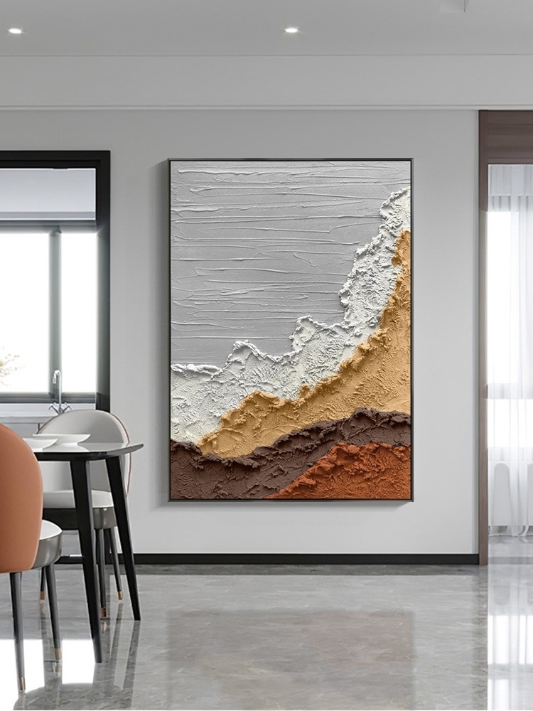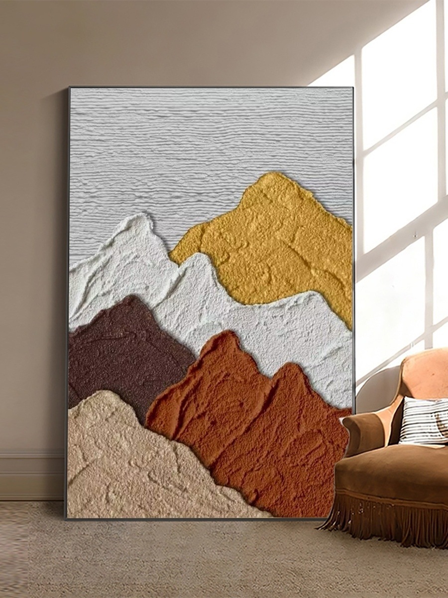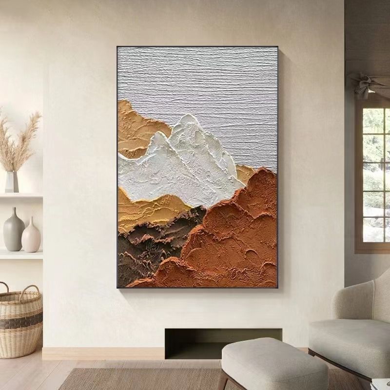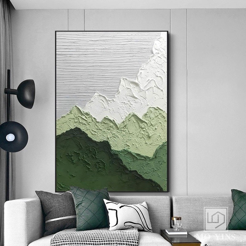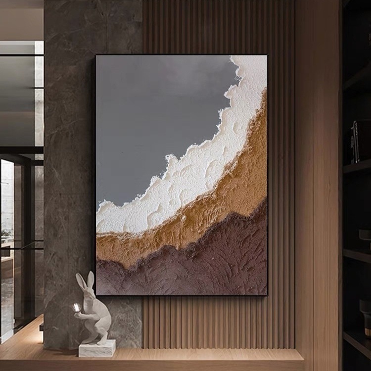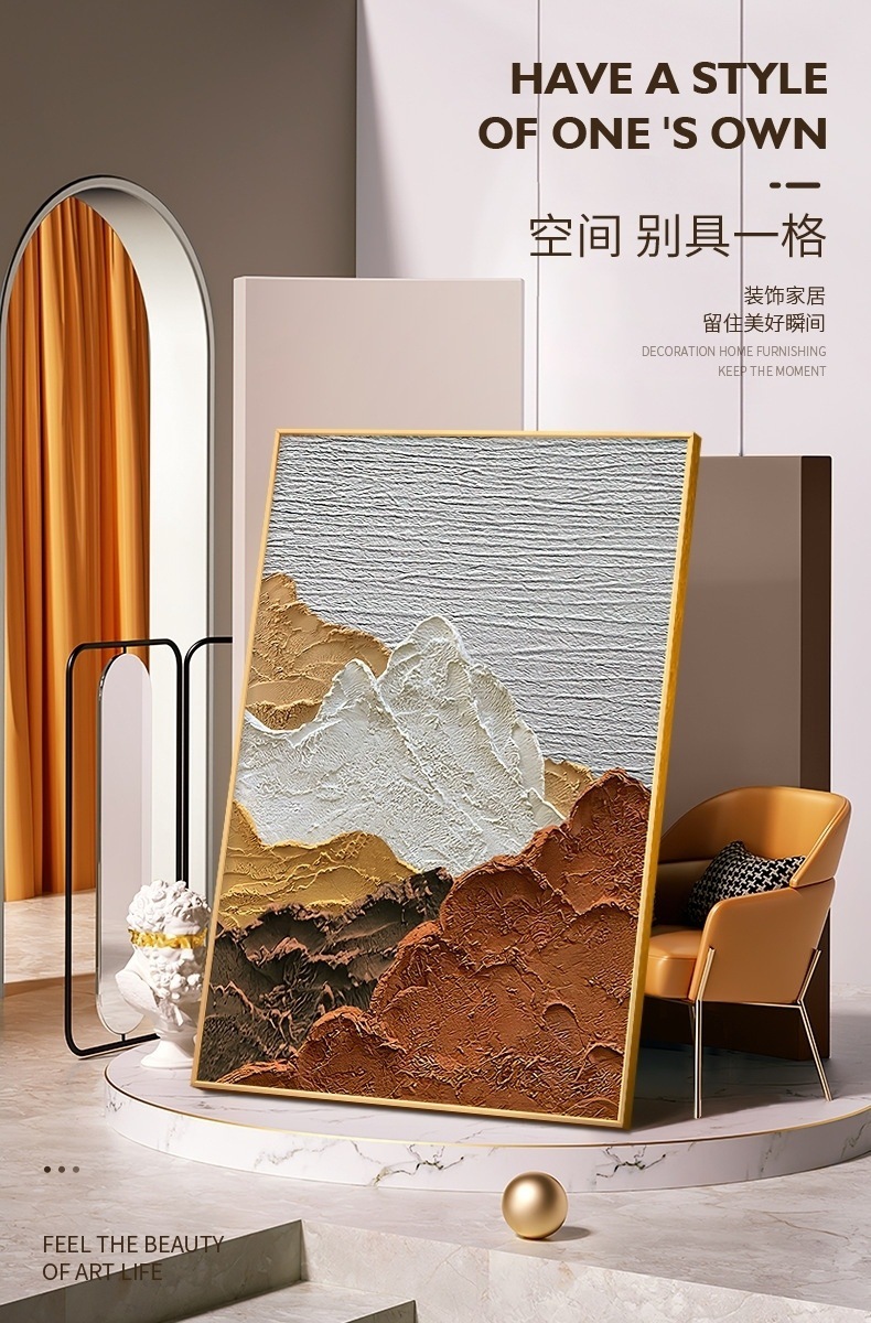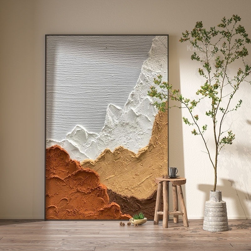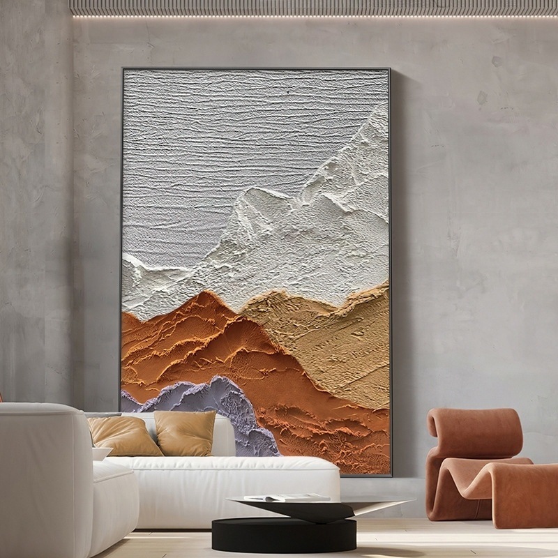 Mặt sau bức tranh trang trí phòng khách kết cấu tiên tiến sofa nền tường bức tranh tường từ trần đến sàn wabi sabi gió hiên treo bức tranh