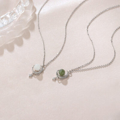 Mặt Trăng Bạc S925 Vòng Cổ Vòng Cổ Nữ Hetian Ngọc Thời Trang Hành Tinh Phong Cách Nữ Tính Siêu Bất Tử Lưới Đèn Đỏ Quà Tặng Sang Trọng
