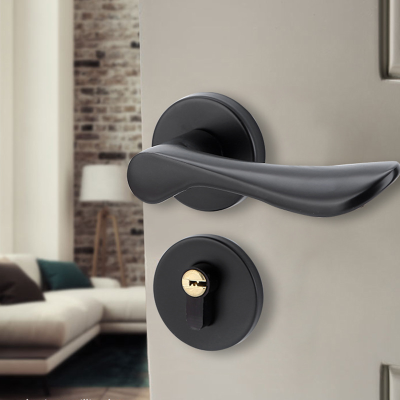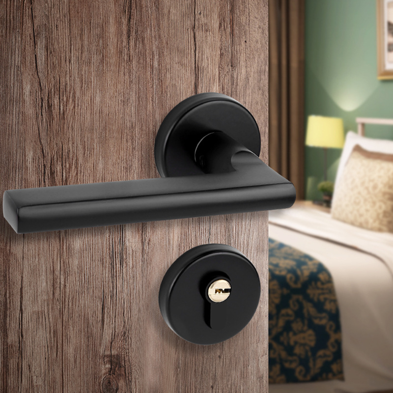 Màu đen tối giản hiện đại tắt tiếng hút từ chia bộ Khóa cửa bộ Khóa cửa nội thất phòng ngủ cửa tay nắm cửa bằng gỗ khóa