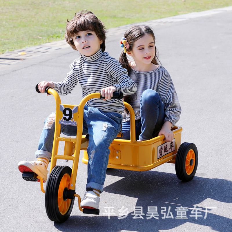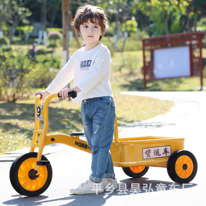 Mẫu giáo mầm non giáo dục trẻ em ba bánh xe đạp song song vận chuyển hàng hóa xô xe giáo dục mầm non xe đẩy đồ chơi ngoài trời