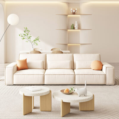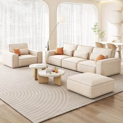 Màu kem phong cách đậu phụ khối sofa phòng khách căn hộ nhỏ thẳng móng vuốt mèo vải lưng cao sofa vuông tối giản Ý