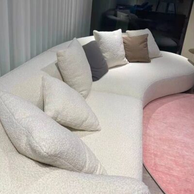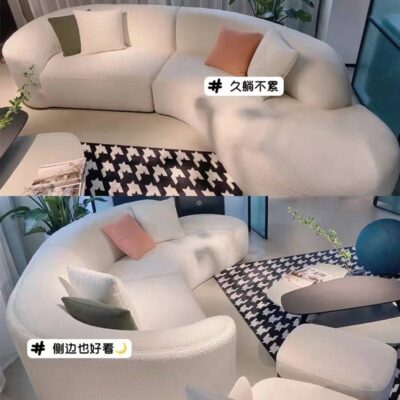 Màu kem phong cách ghế sofa phòng khách căn hộ nhỏ hiện đại nhỏ gọn cừu nhung đẹp sang trọng công nghệ cong vải hạt điều sofa Bắc Âu