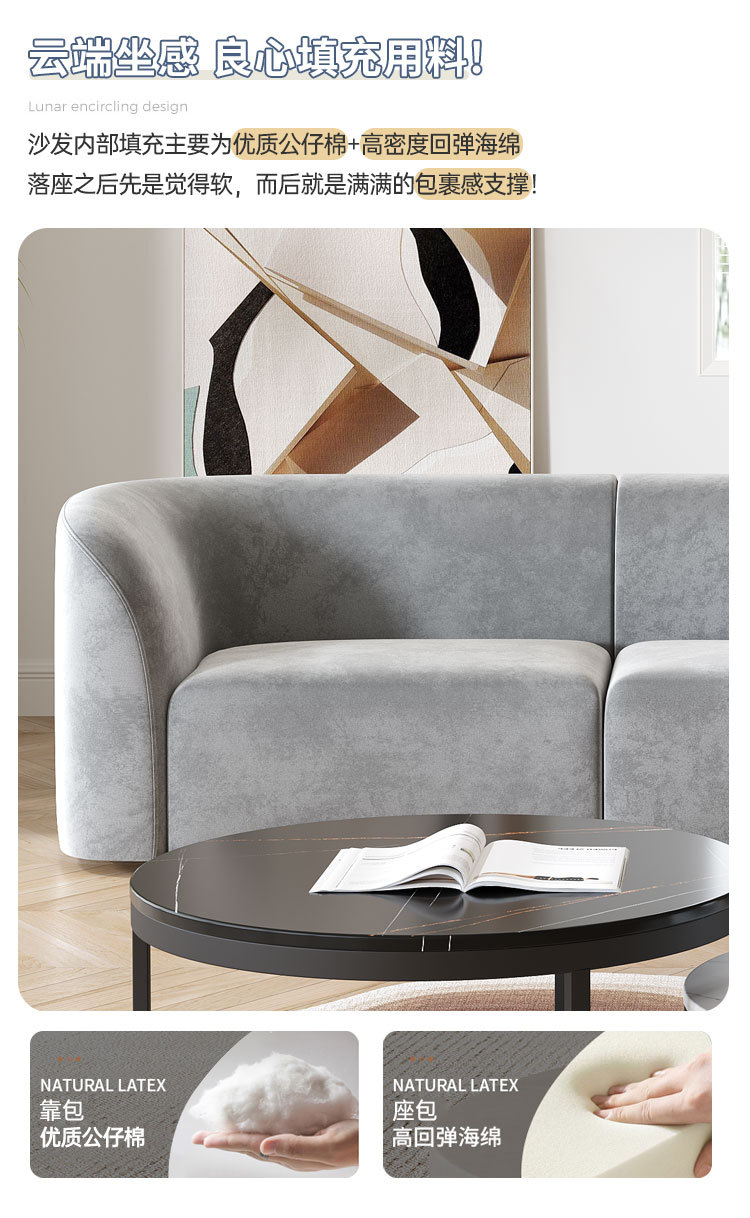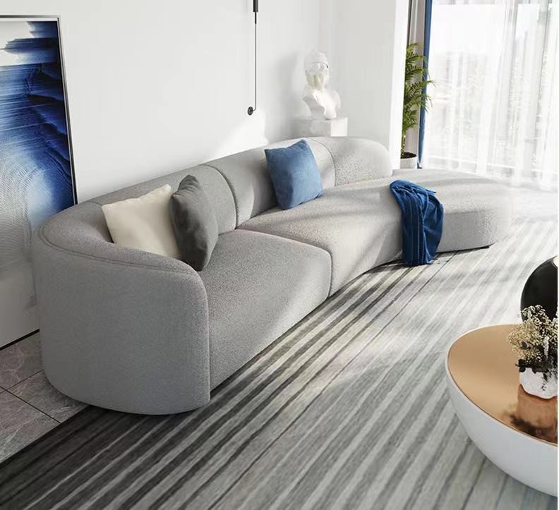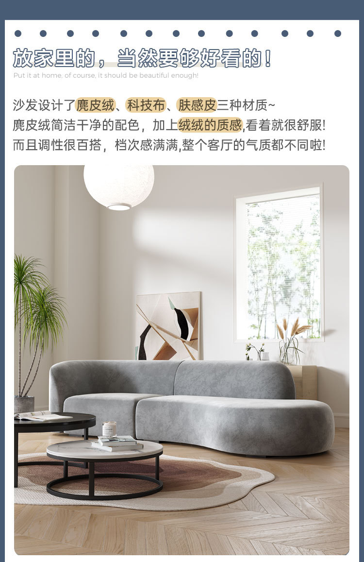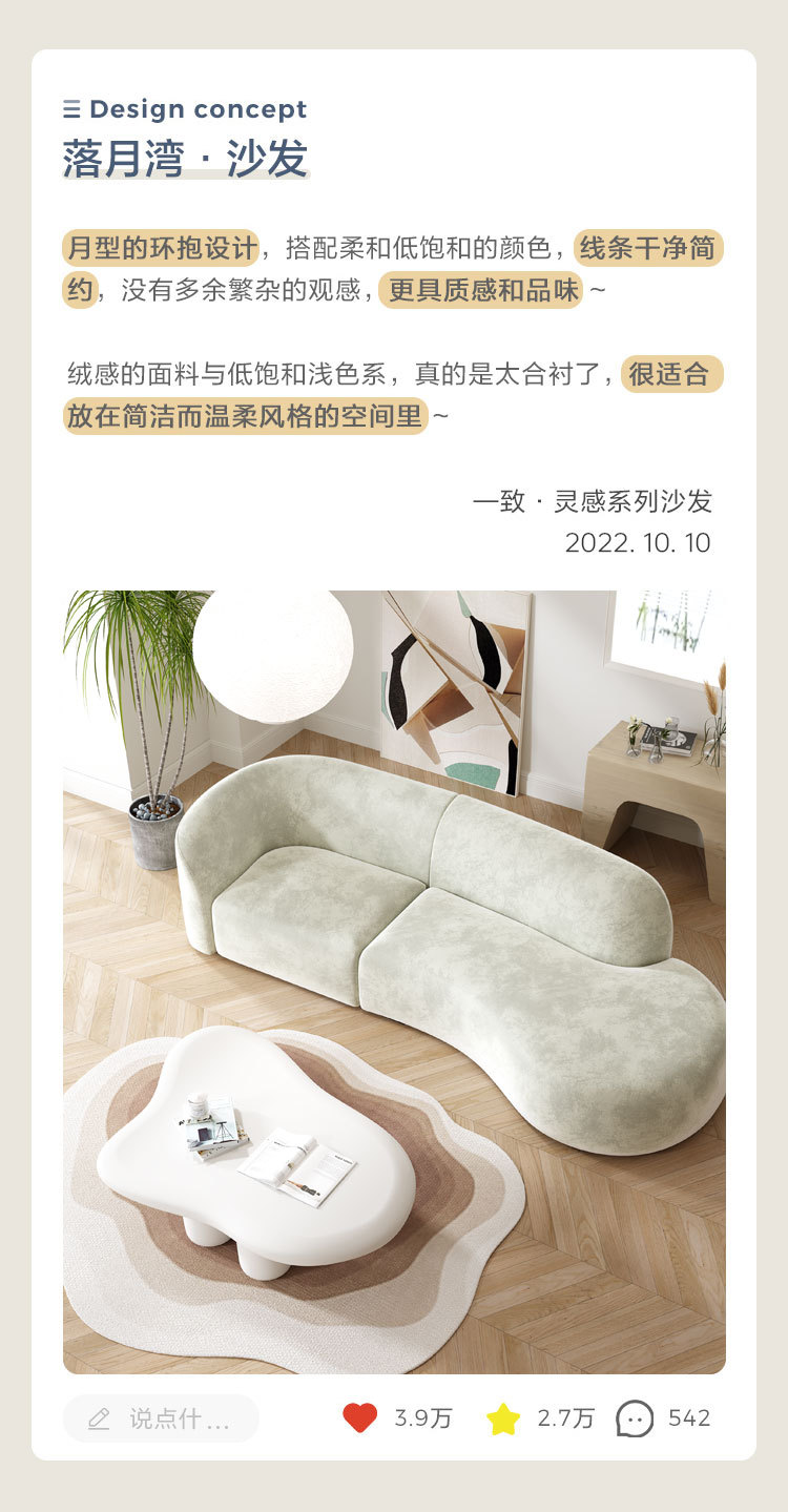 Màu kem phong cách ghế sofa phòng khách căn hộ nhỏ hiện đại nhỏ gọn cừu nhung đẹp sang trọng công nghệ cong vải hạt điều sofa Bắc Âu