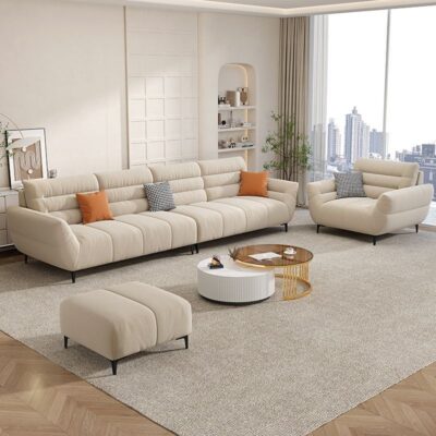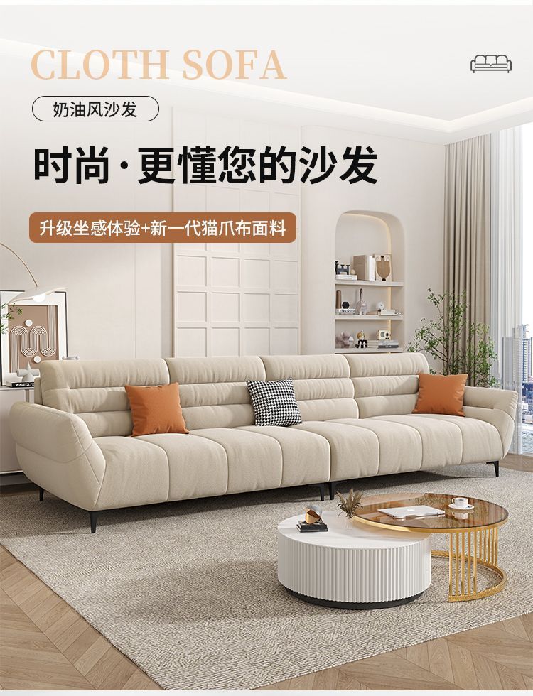Màu kem phong cách sofa vải phòng khách hàng thẳng ba người căn hộ nhỏ đơn giản hiện đại đẹp sang trọng nhà sofa vải