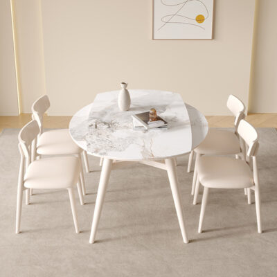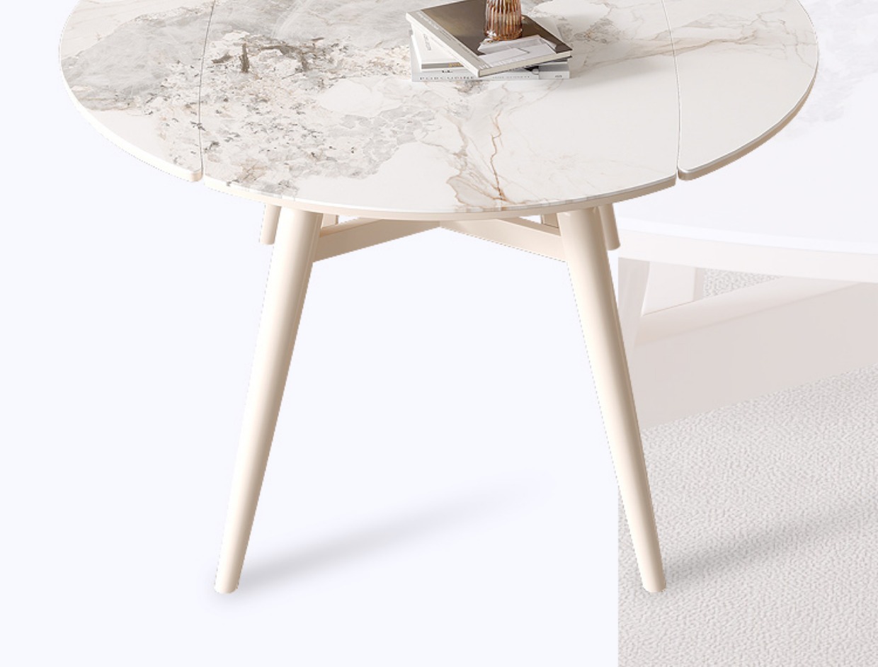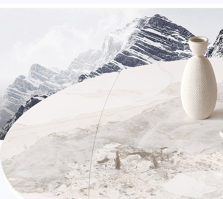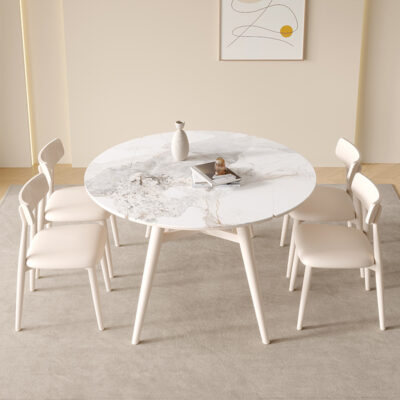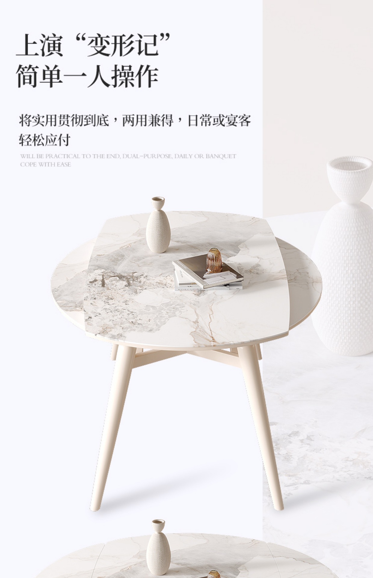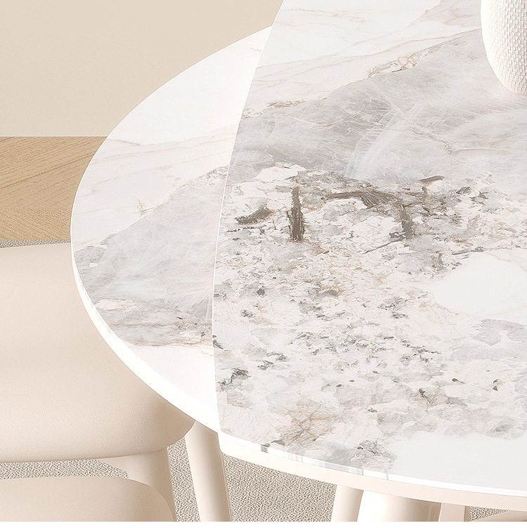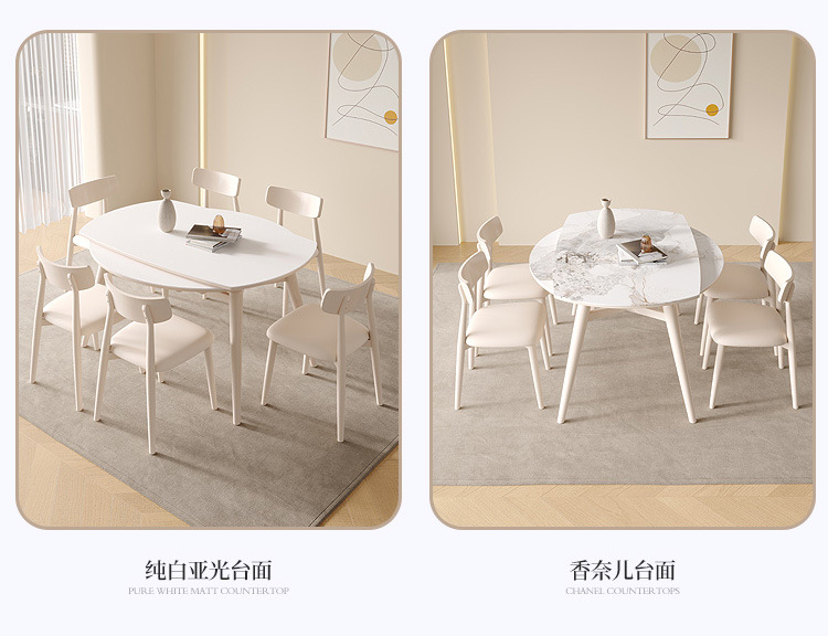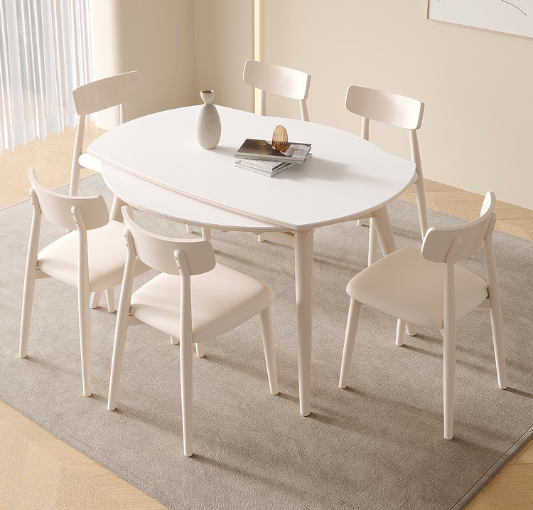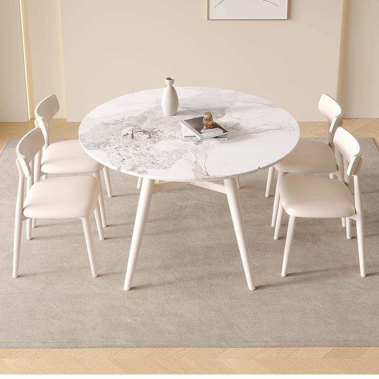 Màu kem phong cách tấm đá tròn bàn ăn kính thiên văn ghế kết hợp căn hộ nhỏ căng bàn ăn gỗ rắn nhà tối giản hiện đại