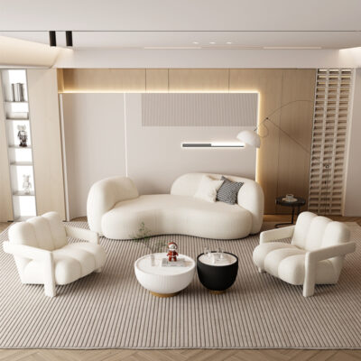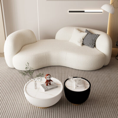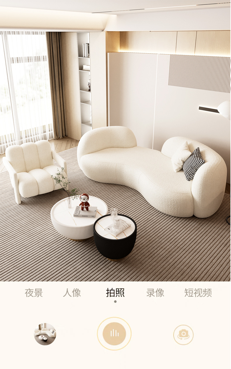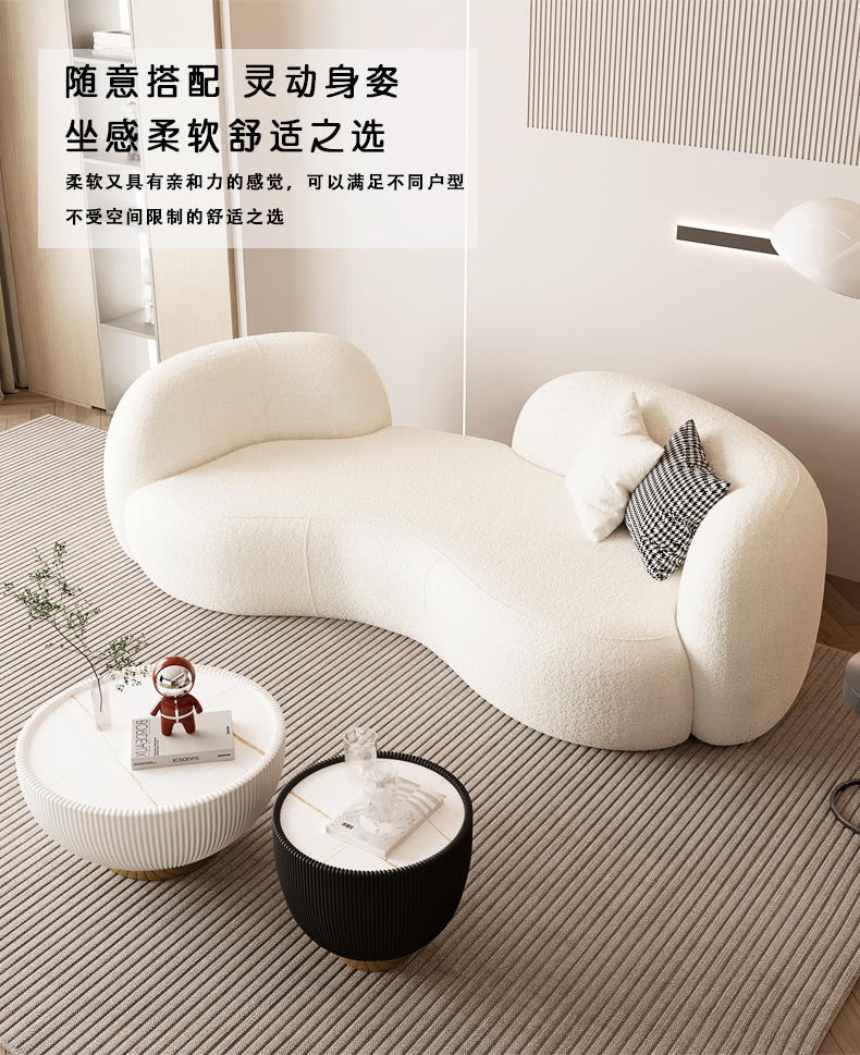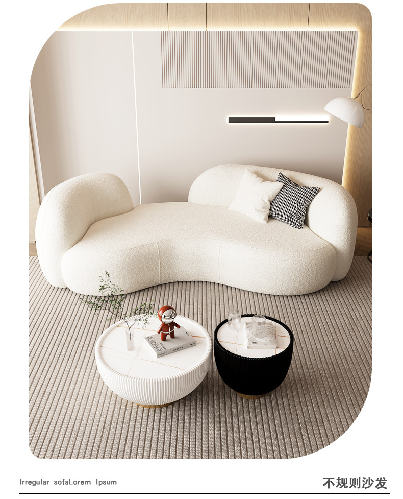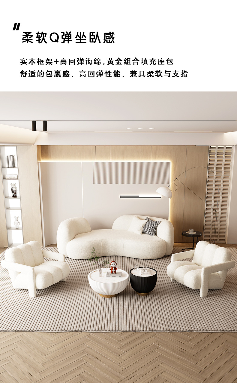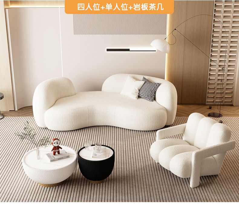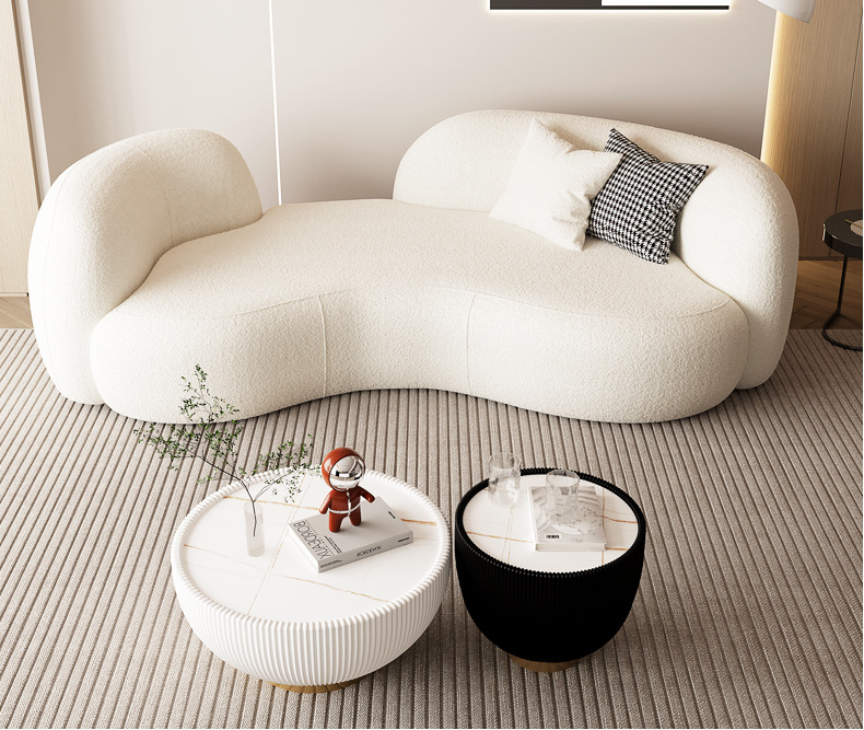 Màu kem sofa cong bàn cà phê kết hợp phòng khách nhỏ căn hộ đơn cho thuê nhà internet phong cách người nổi tiếng Đẹp phòng ngủ sang trọng