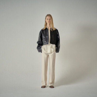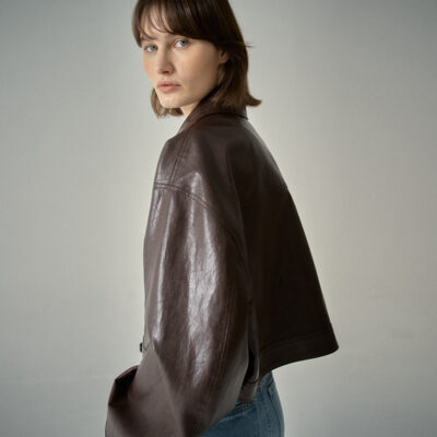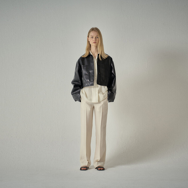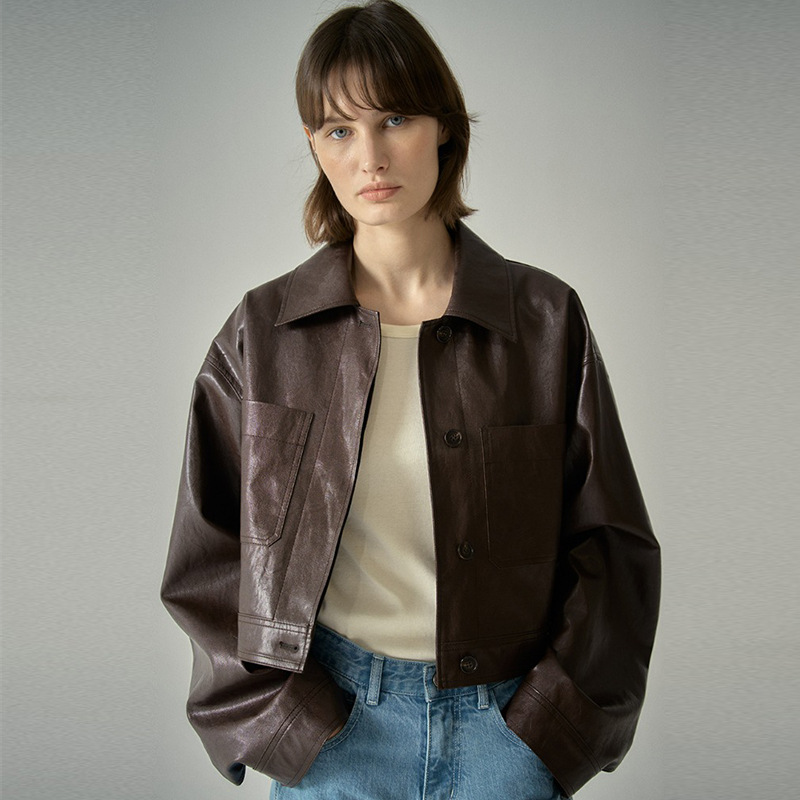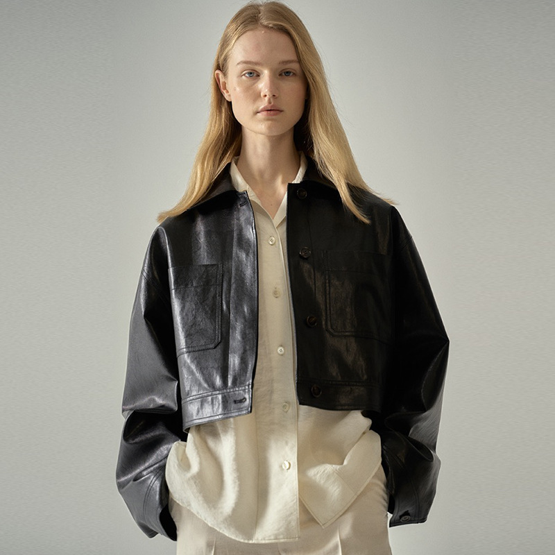 MẪU MẶT BẰNG áo khoác da ngắn nữ thiết kế xuân thu 2023 cảm giác không có gì viết áo khoác