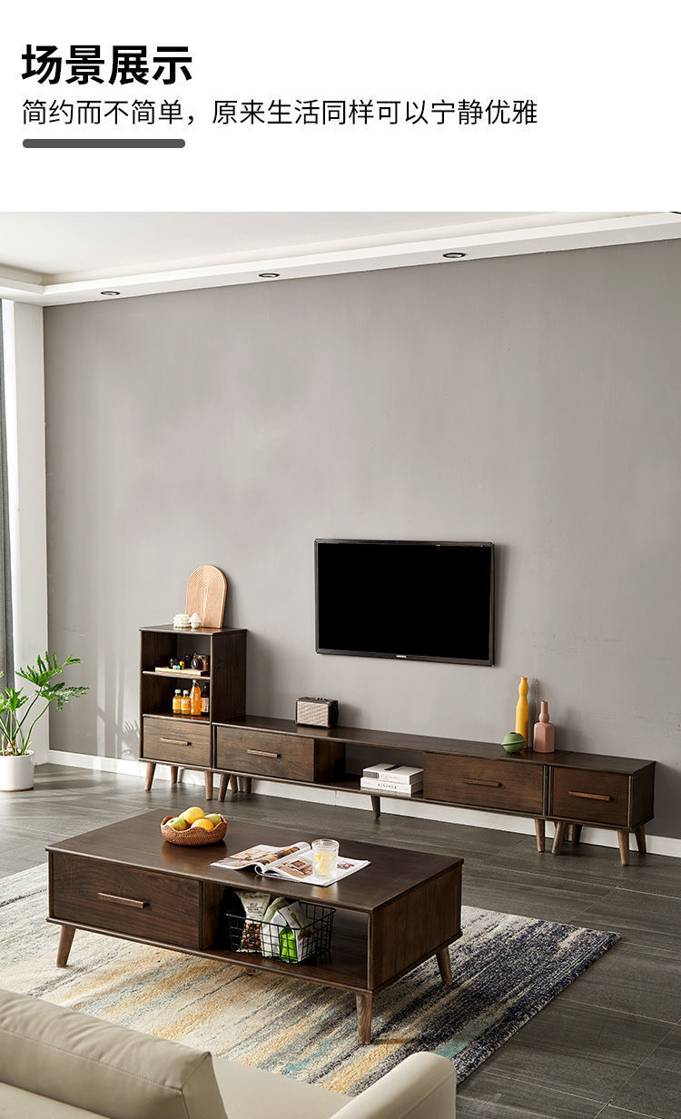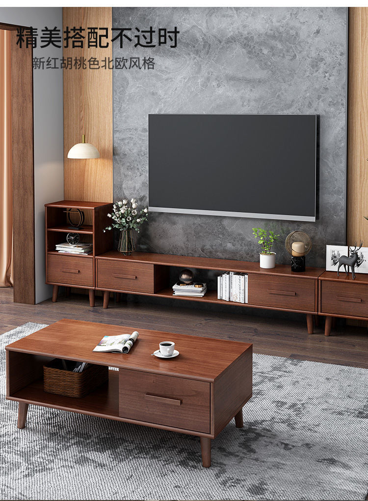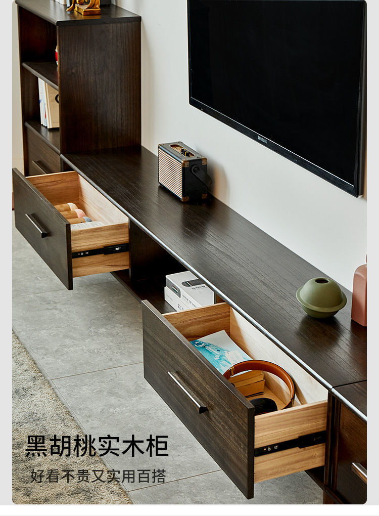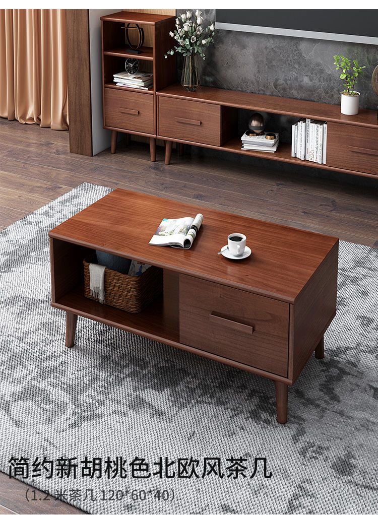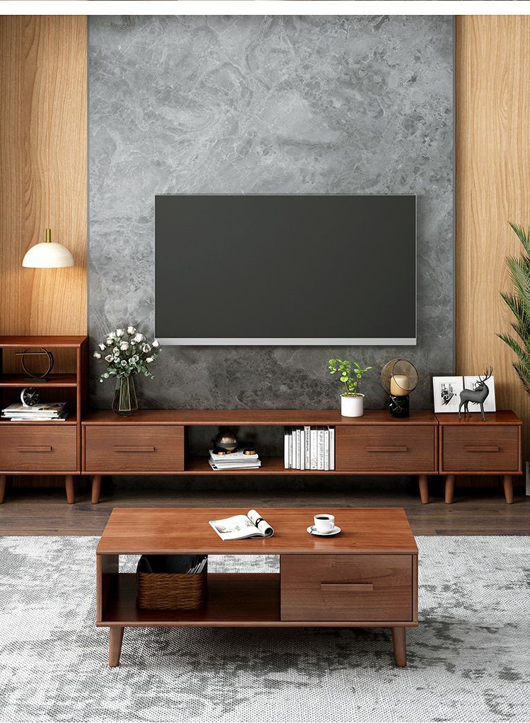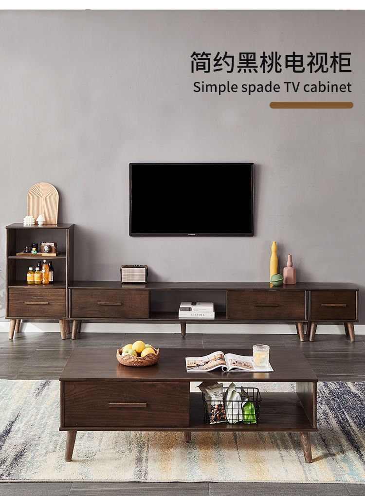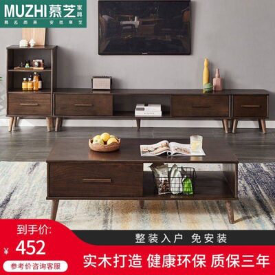 Màu óc chó tủ tivi gỗ nguyên khối phòng khách tối giản hiện đại bàn cà phê mới kết hợp tủ tivi sàn căn hộ nhỏ