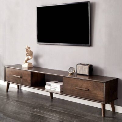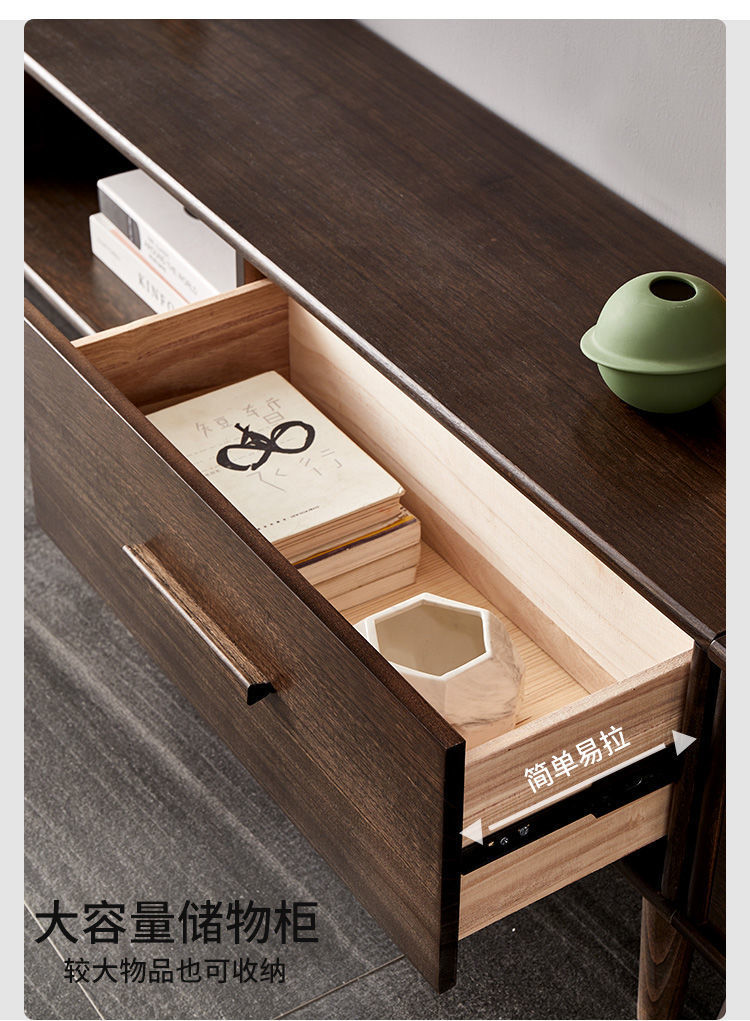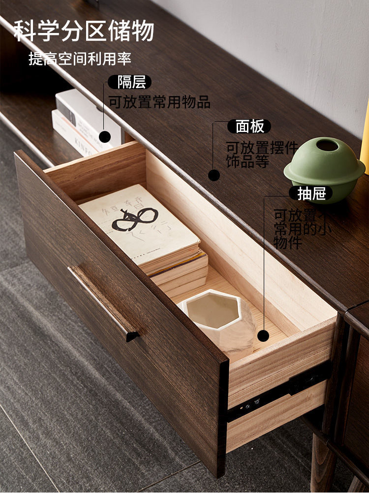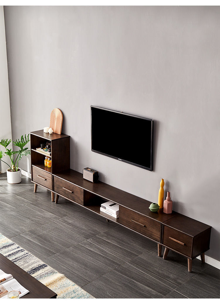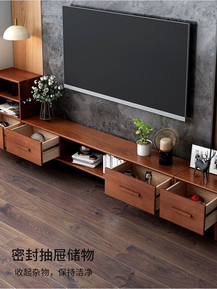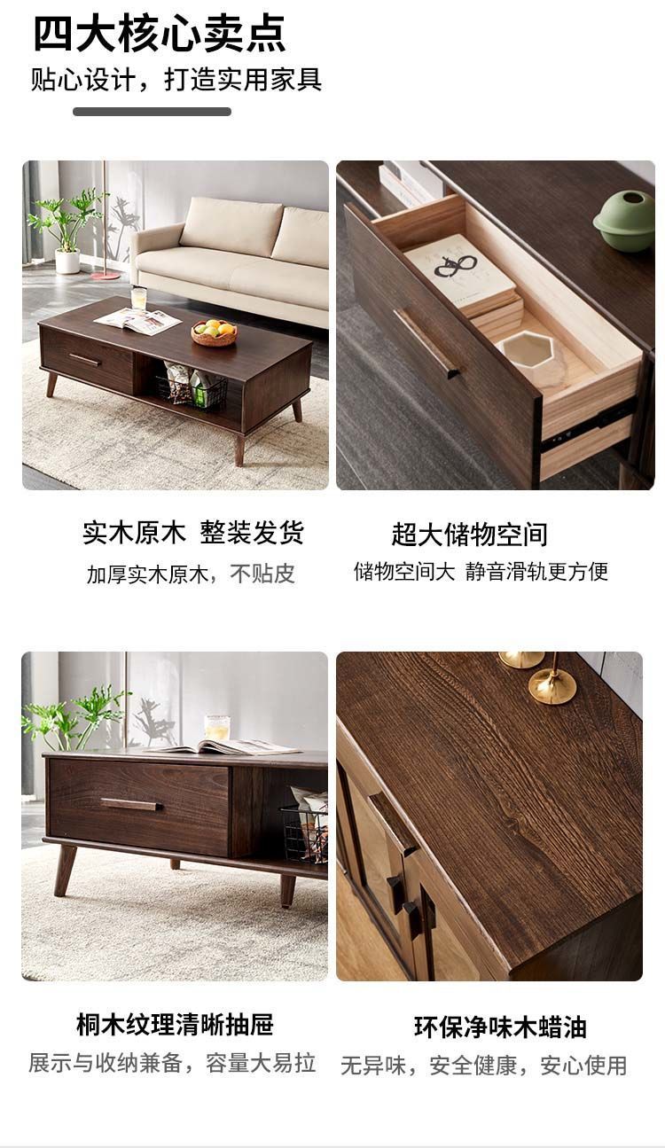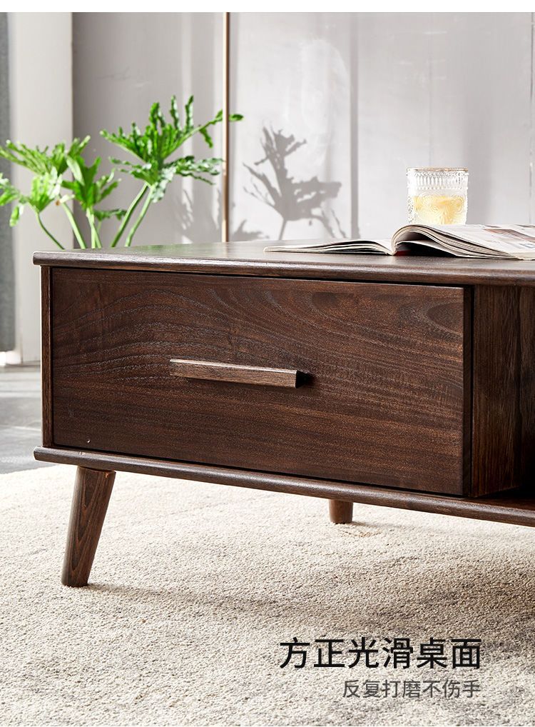 Màu óc chó tủ tivi gỗ nguyên khối phòng khách tối giản hiện đại bàn cà phê mới kết hợp tủ tivi sàn căn hộ nhỏ