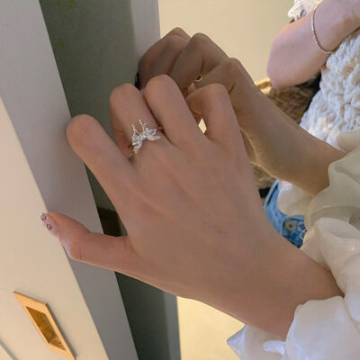 Màu sắc không đều zircon bướm mở vòng kim loại thiết kế nữ cảm giác thích hợp cá tính nhẫn phù hợp với nhẫn nhẫn