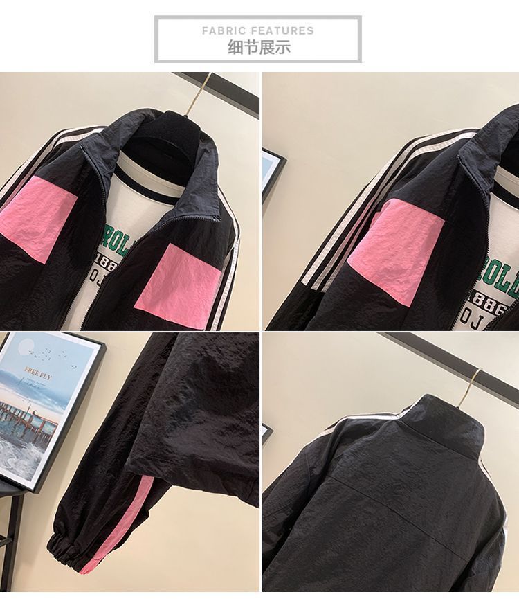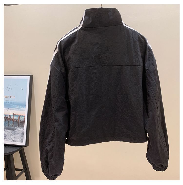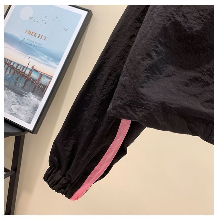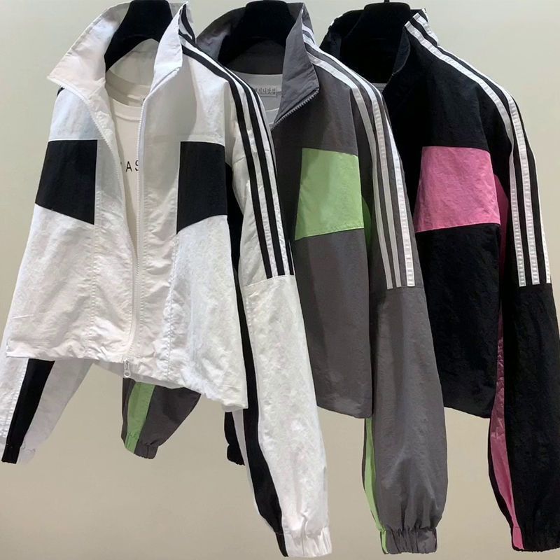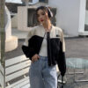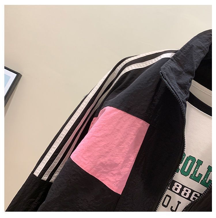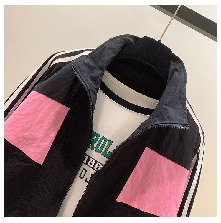 Màu sắc tương phản áo khoác ngắn mỏng của phụ nữ mùa xuân và mùa hè 2023 thắt lưng mới cổ đứng áo khoác bóng chày đồng phục thời trang nối quần áo chống nắng