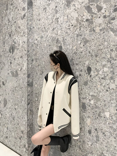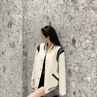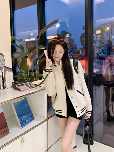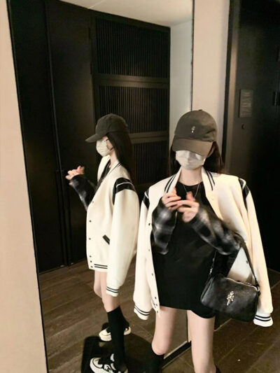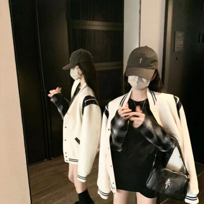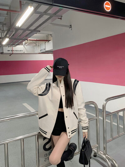 Màu sắc tương phản nối áo khoác bóng chày nữ phong cách mùa xuân và mùa thu chiên đường phố dáng rộng mỏng giản dị dài tay áo khoác áo khoác
