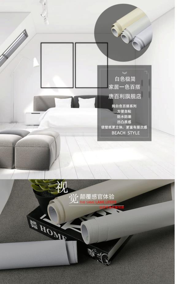 Màu trắng tinh khiết giấy dán tường tự dính trần tường đổi mới giấy dán tường chống thấm nước ký túc xá dán tường máy tính để bàn dán