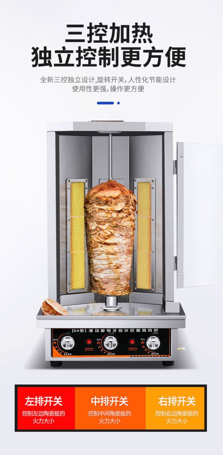 Máy BBQ Thổ Nhĩ Kỳ dùng gas, máy nướng thịt xoay tự động thương mại, bánh sandwich thịt Brazil chạy điện, máy nướng thịt và làm cơm là thiết bị nằm trong danh mục Đồ nhà hàng > Bếp nướng, được thiết kế chuyên dụng cho các nhà hàng cần sự tiện nghi và chuyên nghiệp.