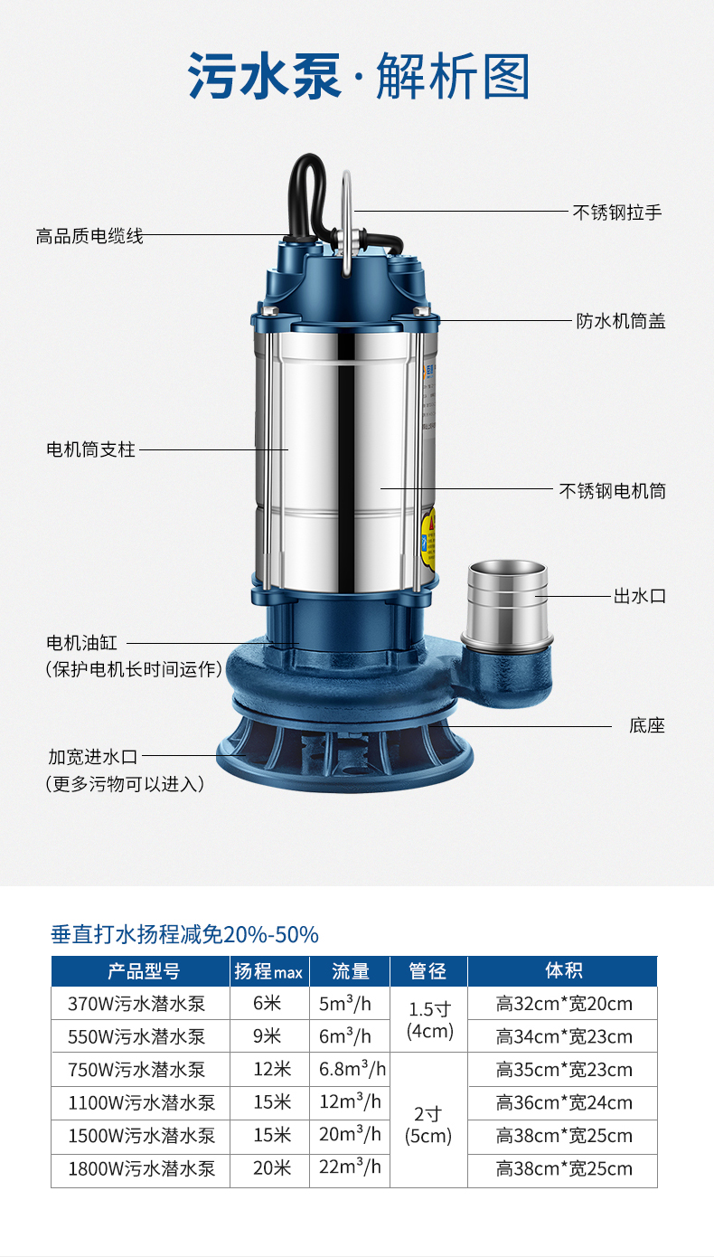 Máy bơm chìm 220v hộ gia đình máy bơm nhỏ bằng thép không gỉ nâng cao bơm tưới tiêu nông nghiệp và bơm thoát nước thải