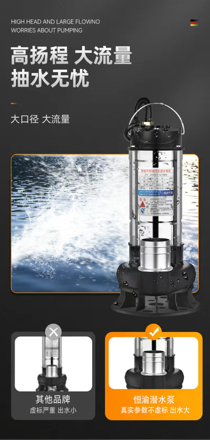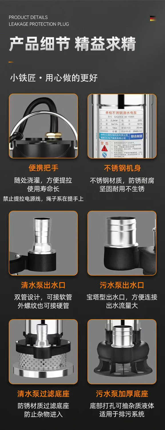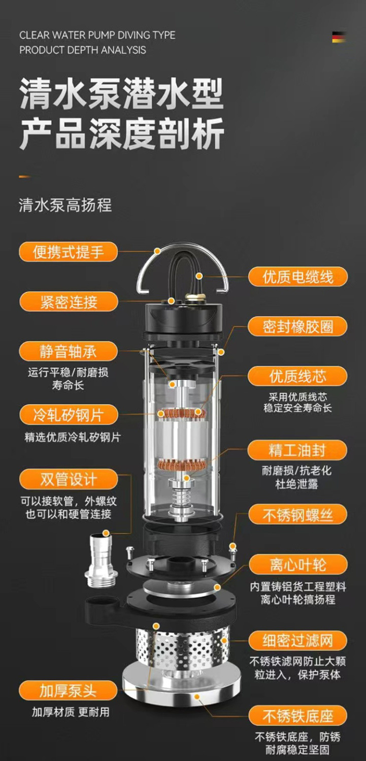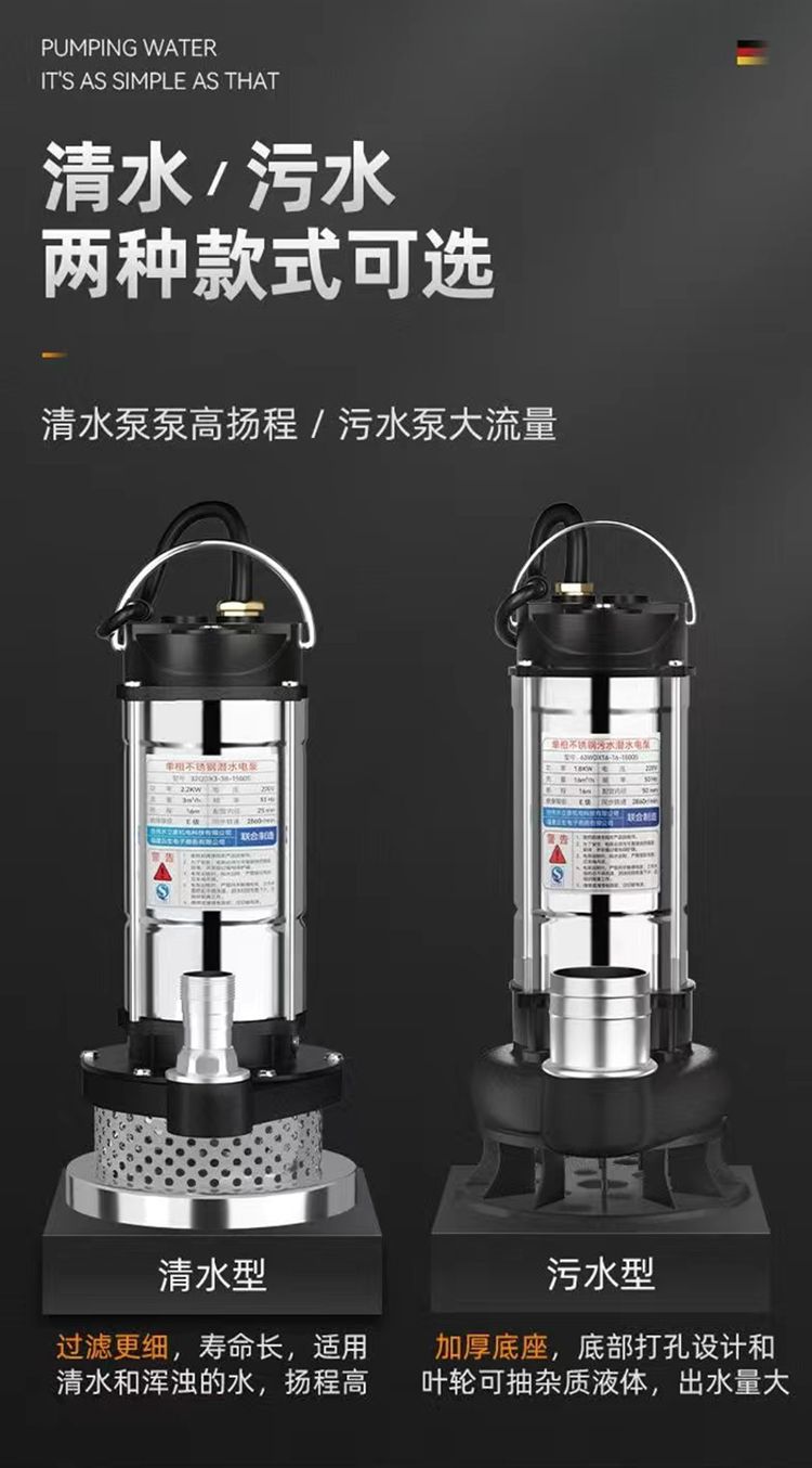 Máy bơm chìm inox 220V hộ gia đình cao nâng máy bơm nước nước thải nông nghiệp thủy lợi nước thải máy bơm nước sạch máy bơm nước