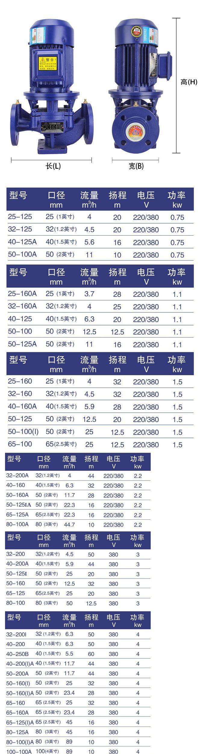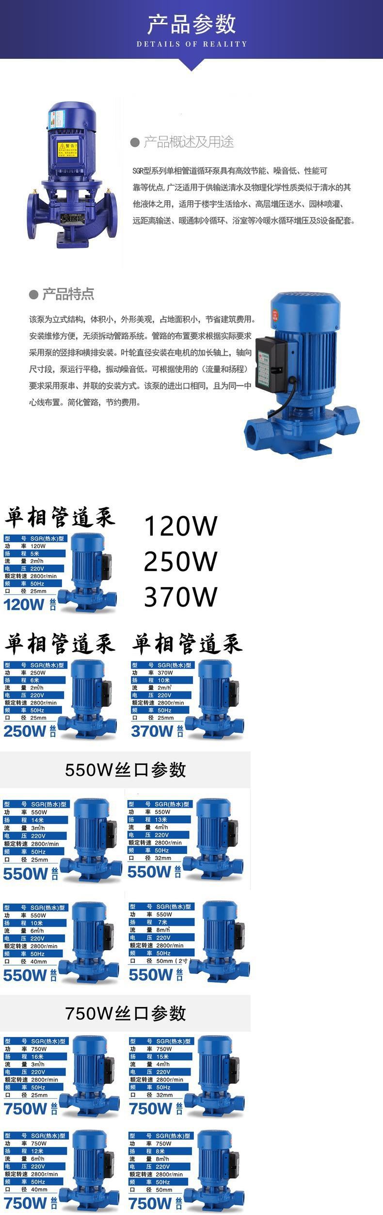 Máy bơm đường ống thẳng đứng bơm tăng áp hộ gia đình nhỏ 220 máy bơm ly tâm nước nóng 380 máy bơm tuần hoàn sưởi ấm công nghiệp một mảnh