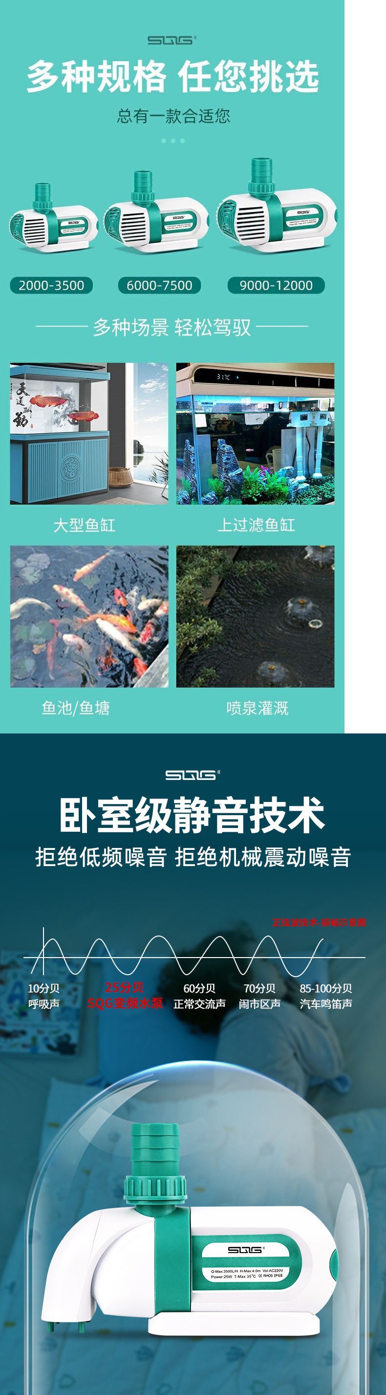 Máy bơm nước bể cá SQG máy bơm nước ao cá máy bơm chìm tần số chuyển đổi phân hộ gia đình hút lọc bơm nhà sản xuất AliExpress
