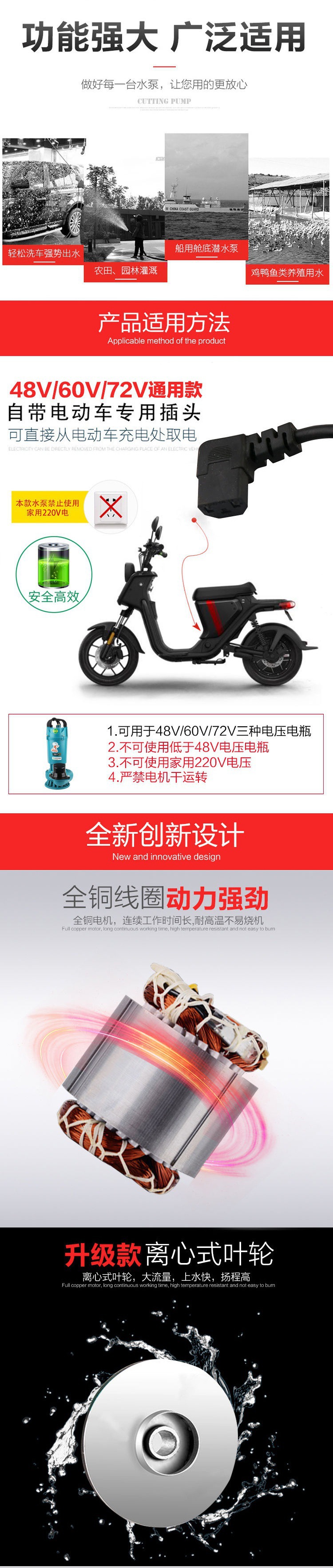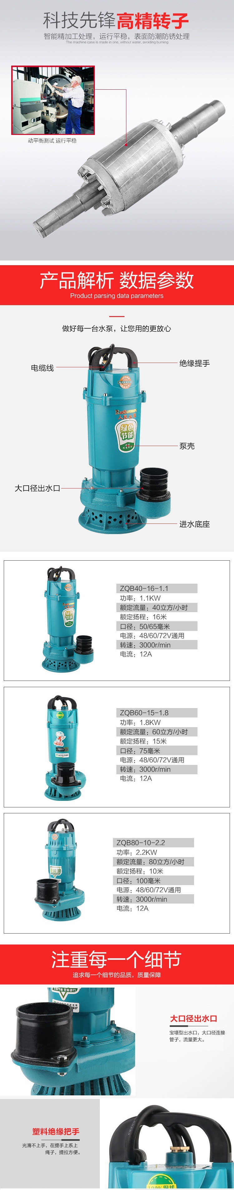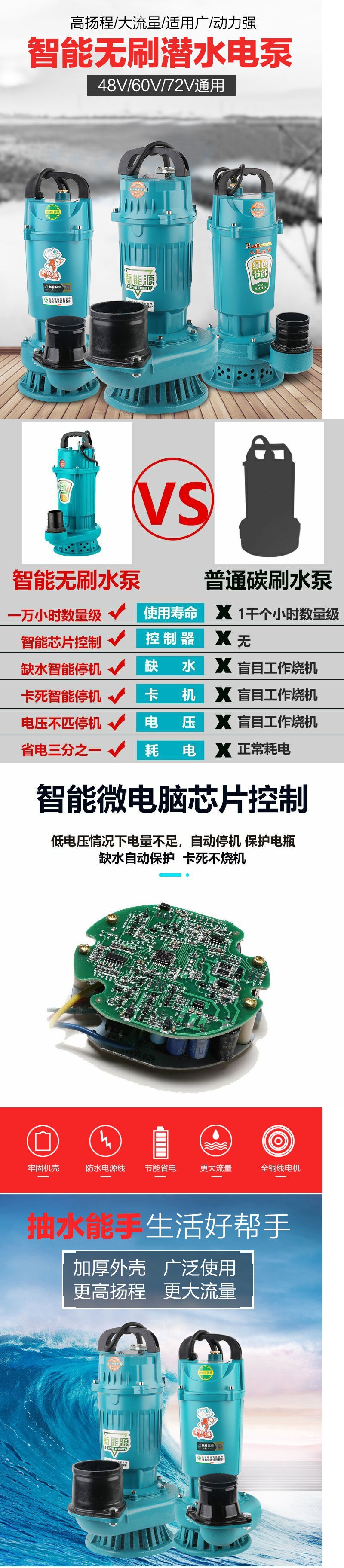 Máy bơm nước nông nghiệp xe điện DC Máy bơm chìm không chổi than DC bơm pin thủy lợi lớn 2.5 inch 3 inch 4 thế hệ