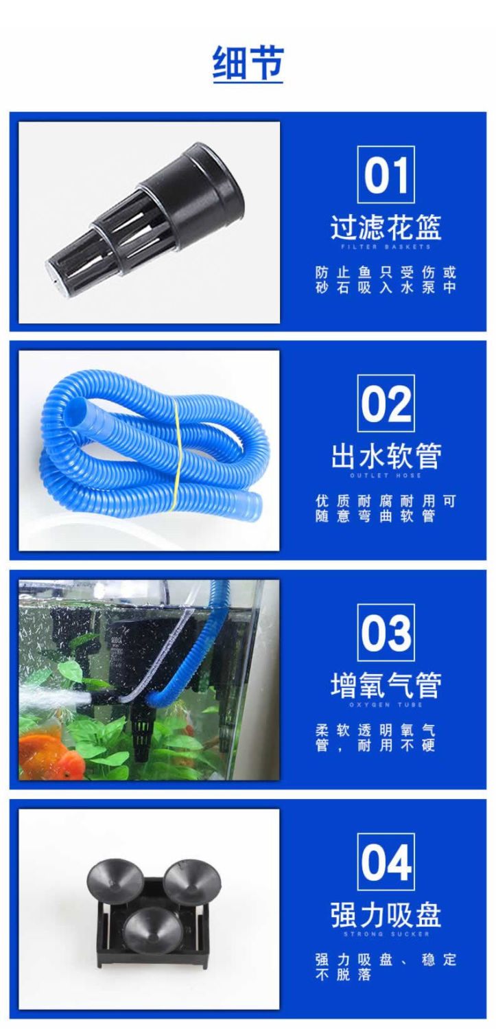 Máy bơm sục khí bể cá Máy bơm chìm bể cá ba trong một nhà sản xuất máy bơm tuần hoàn nước nhỏ bán buôn Amazon