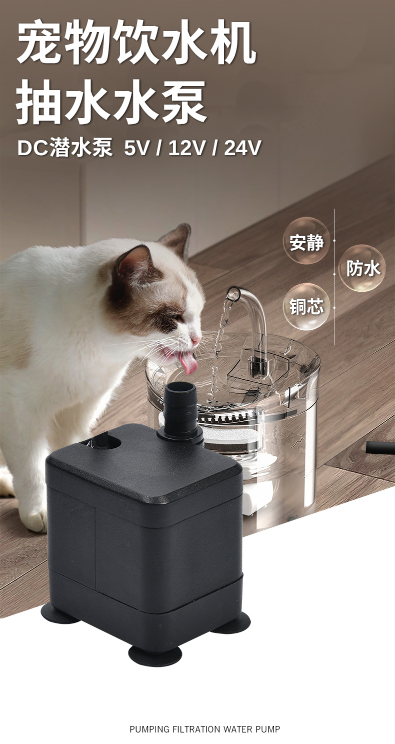 Máy bơm tạo độ ẩm 5VDC DC không chổi than Máy bơm chìm siêu nhỏ Quạt lạnh Máy bơm nước cho thú cưng nhỏ và im lặng