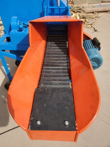 相对于4刀铡草机,本机工作室内有2组,共计6刀,机身加宽,吃草量和出草量加大。