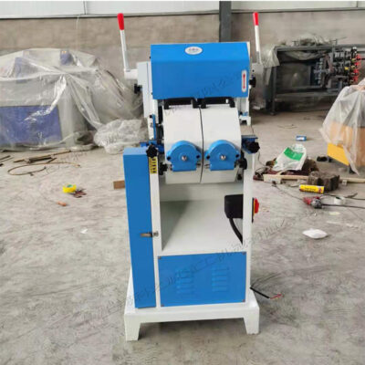 圆棒砂光机,主要组件包括机座、机身和传动及送料装置,所述传动及送料装置主要包括电机、减速轴、送料托板、砂带和胶轮,所述砂带设置在旋转的主动轮和被动轮上,所述胶轮设置于与砂带面向的操作盘上。
