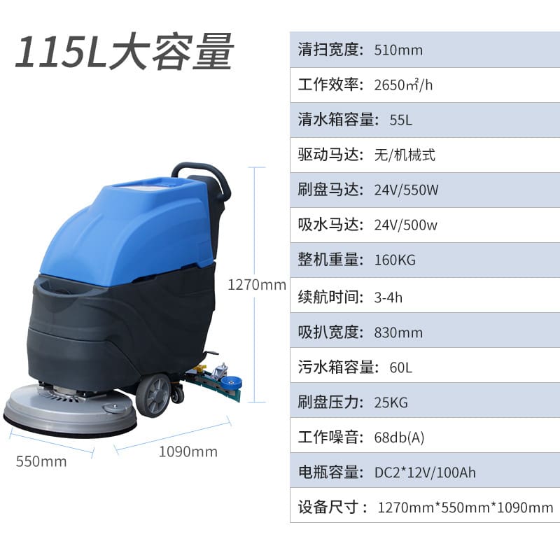 Nơi xuất xứ: Tế Ninh, Sơn Đông Kích thước thân máy: 1270*550*1090mm Thương hiệu: Huasheng Mã hàng: 550 Công suất: 500W Màu sắc: Xanh lam Thông số kỹ thuật: Model T1/model K2/model 530/model 550/model 560/Máy quét/trọng lượng máy quét :160kg Thời gian làm việc: 3-4h Hiệu suất làm việc: 2650㎡/h Đường kính khung gầm: 510mm Bể nước thải: 55L Tốc độ đĩa chổi: 180 Loại máy: Máy giặt sàn Bối cảnh: Trung tâm mua sắm, bệnh viện, nhà máy